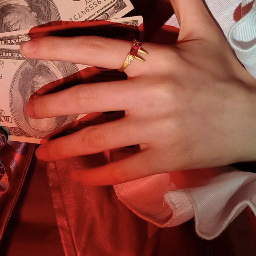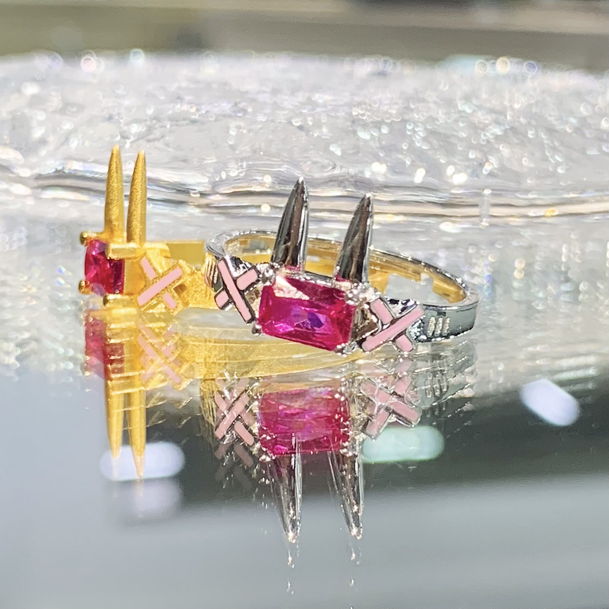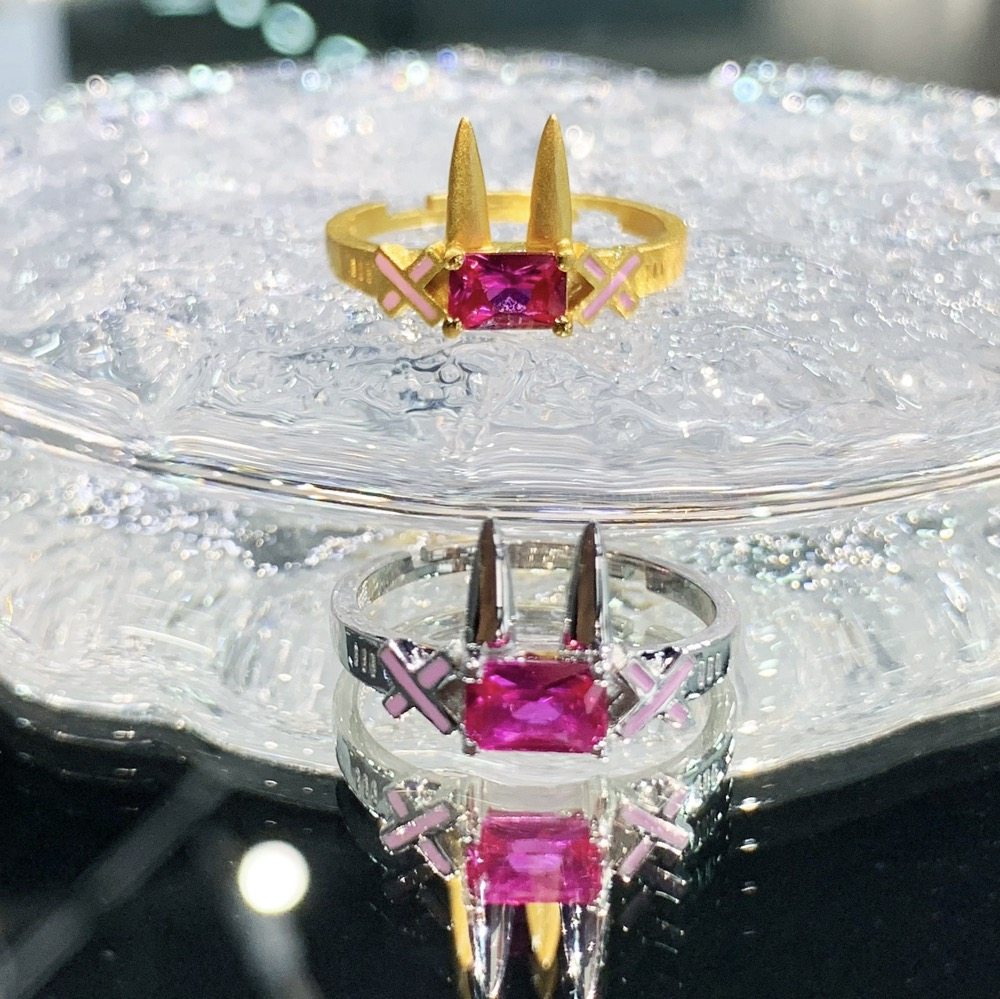 斑sama原创设计款粉色宝石可爱兔子耳朵时尚潮酷穿搭戒指节日礼物