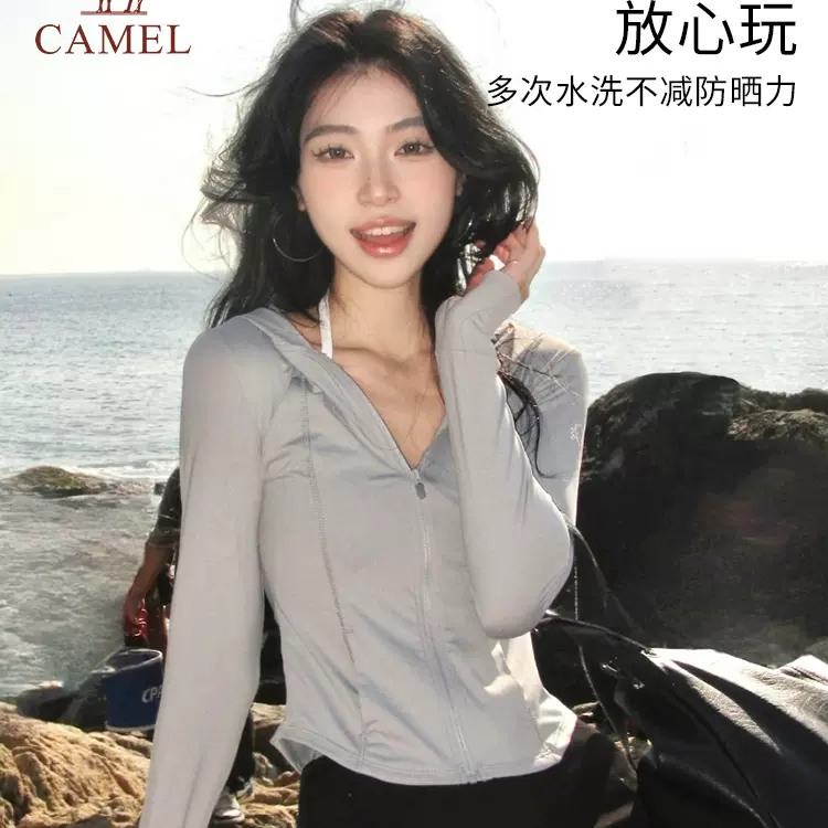 骆驼茶花冰丝防晒衣女装修身夏季新款短款外套女透气冰感防晒服薄