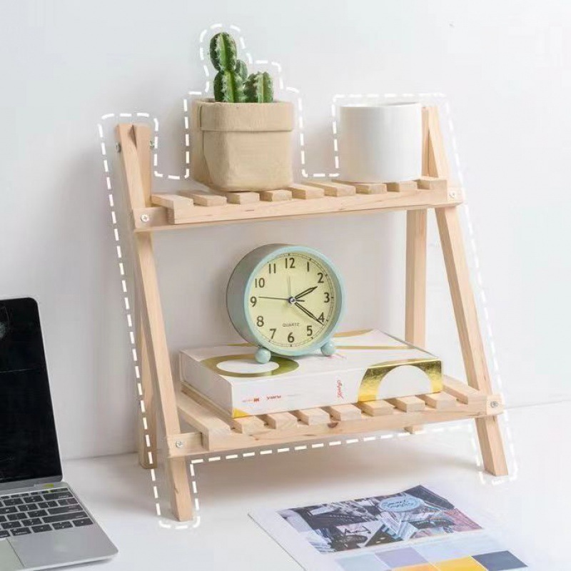 实木双层桌面梯形置物架小型原木质is风简N约宿舍收纳整理增高架