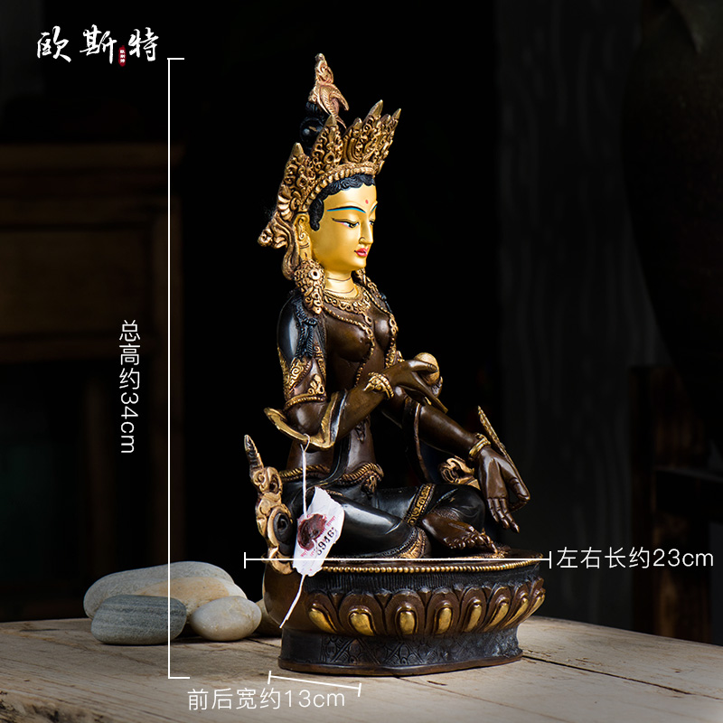 欧斯特地藏王菩萨铜像 尼泊尔手工10寸青铜镀金客厅家居中式摆件