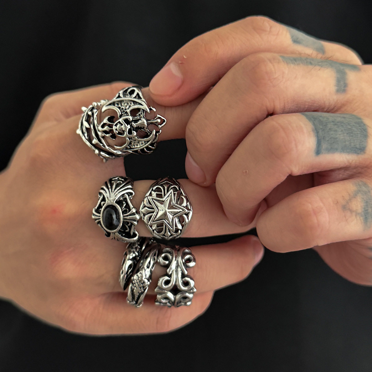 男款6件套恶魔戒指套装 欧美2026复古潮流个性小众设计帅酷配饰品