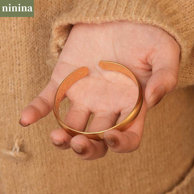 NININA沙金开口手镯古法磨砂心经手镯女款手饰品不掉色时尚首饰