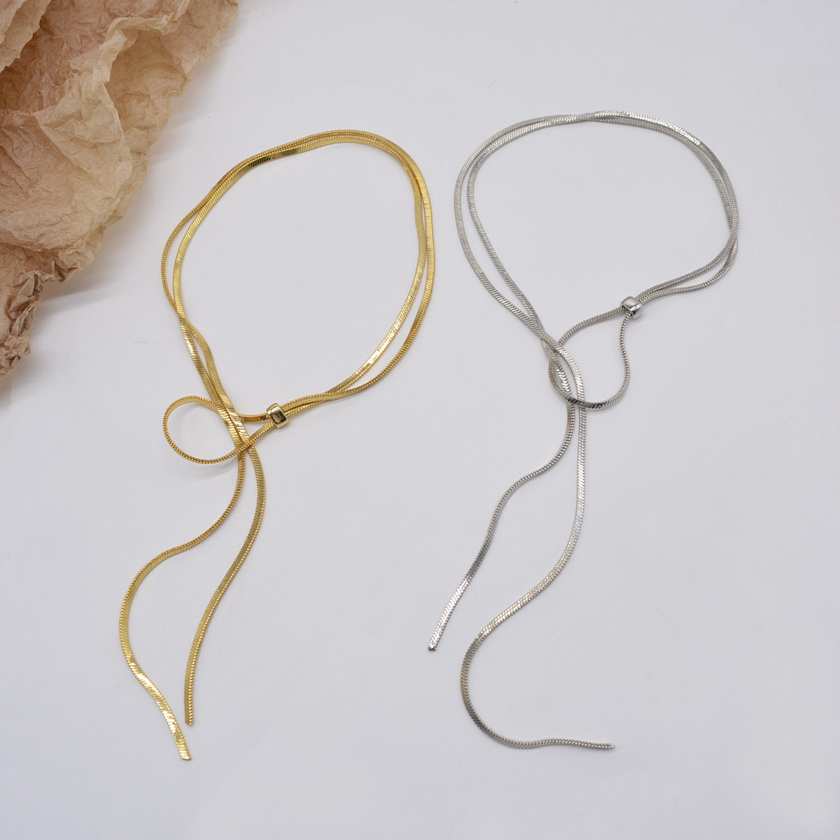 法国capinkofin时尚领带可调节轻奢长款抽拉蛇骨链项链气质毛衣