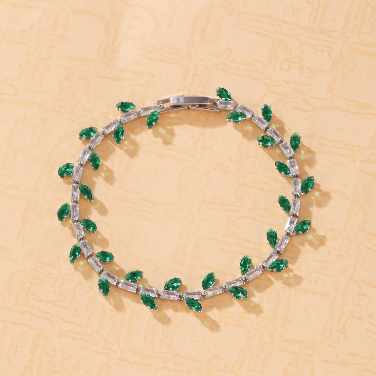 春夏新品手链小清新镶满钻小花绿色树叶手链设计感花朵链条手链