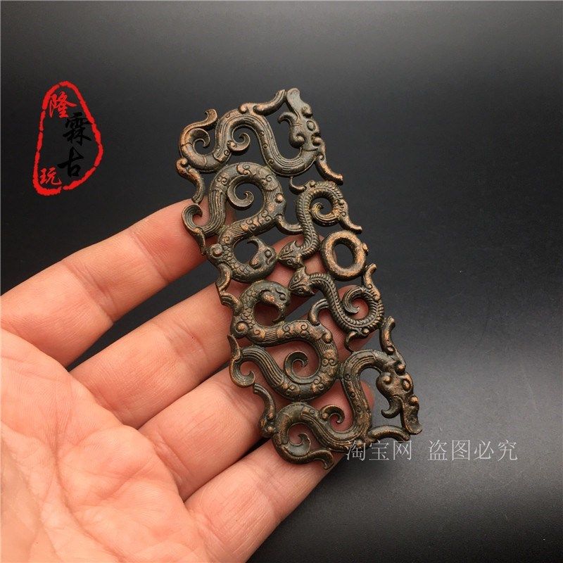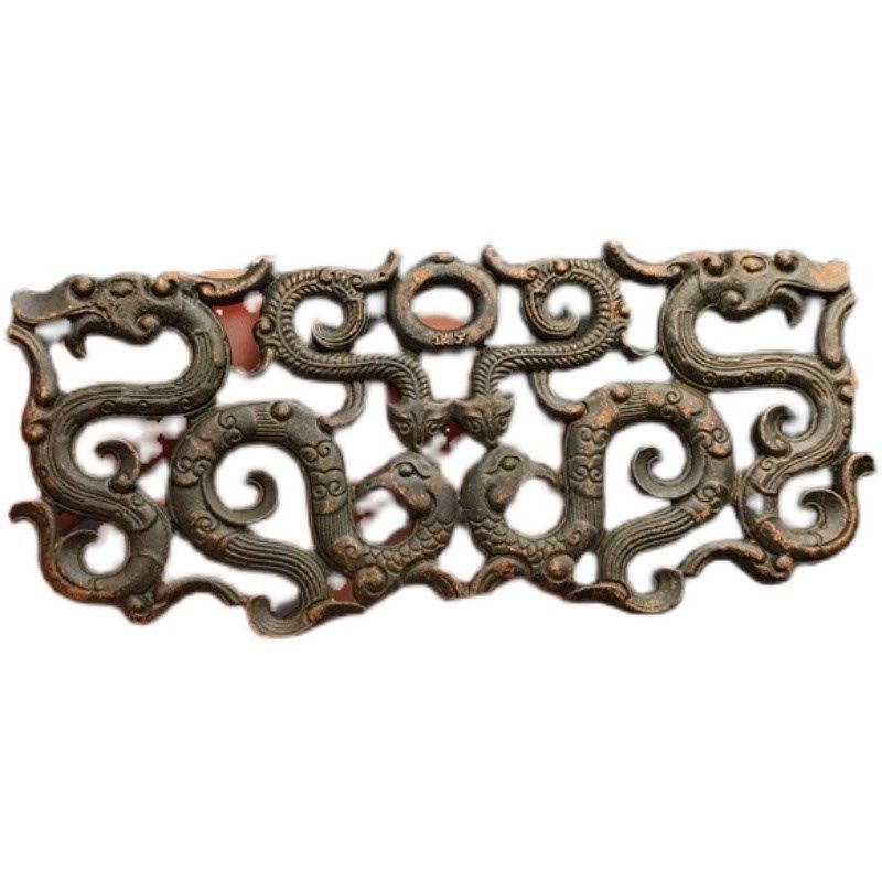 速发铜玩杂项凤藏 仿古老铜器镂空龙收挂牌古牌摆件 老物件铜杂件