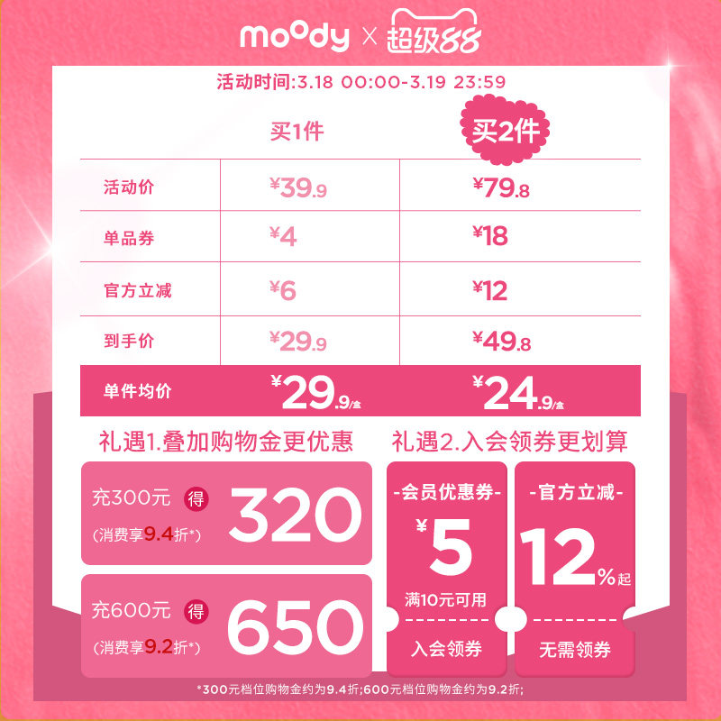 moody美瞳半年抛尼尼粉色彩色隐形眼镜近视中小直径1片官方正品