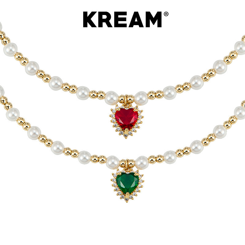 KREAM 贝珠彩钻爱心项链男嘻哈女潮流百搭欧美饰品