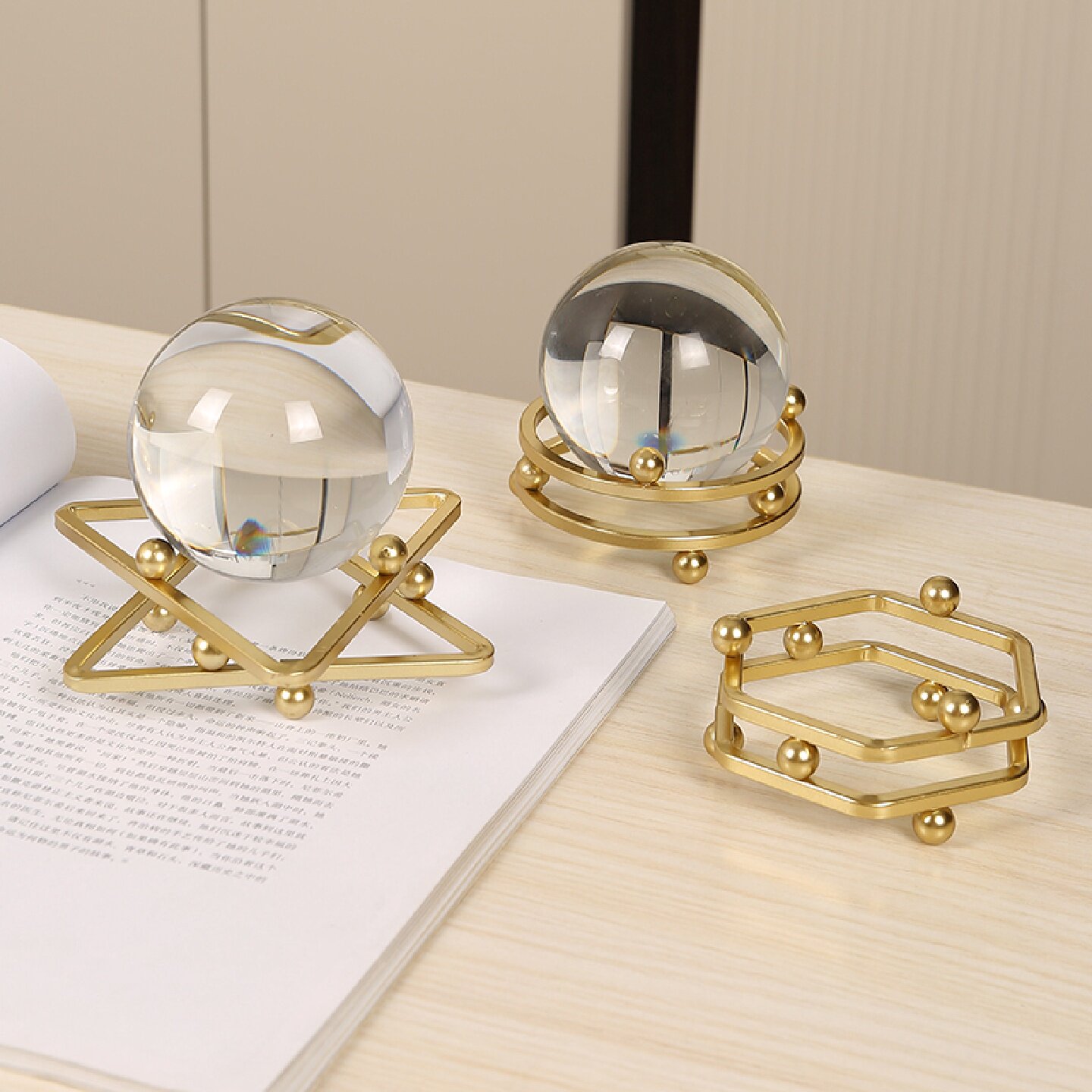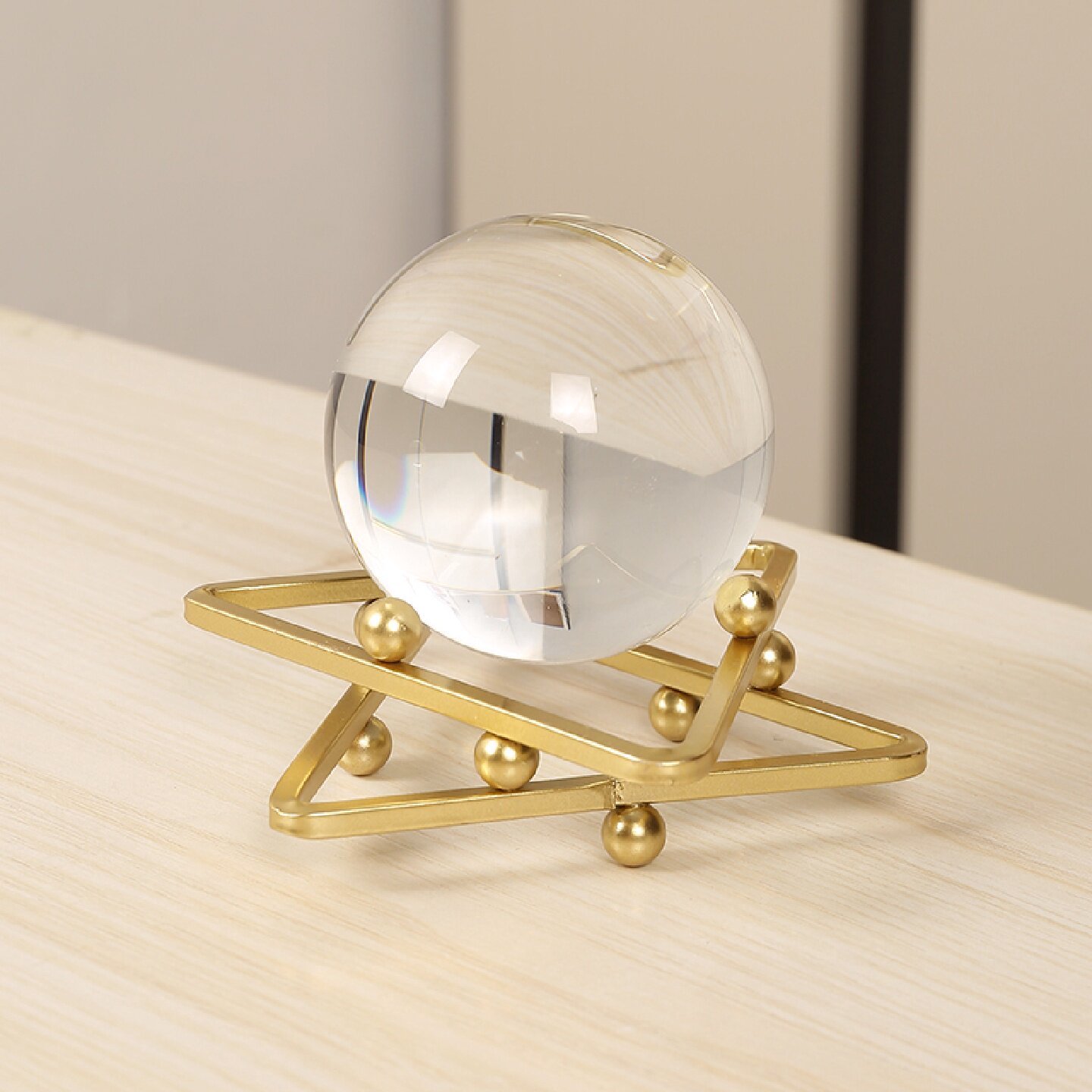 简约时来运转水晶球摆件底座家居轻奢白色招财透明玻璃装饰品摆设