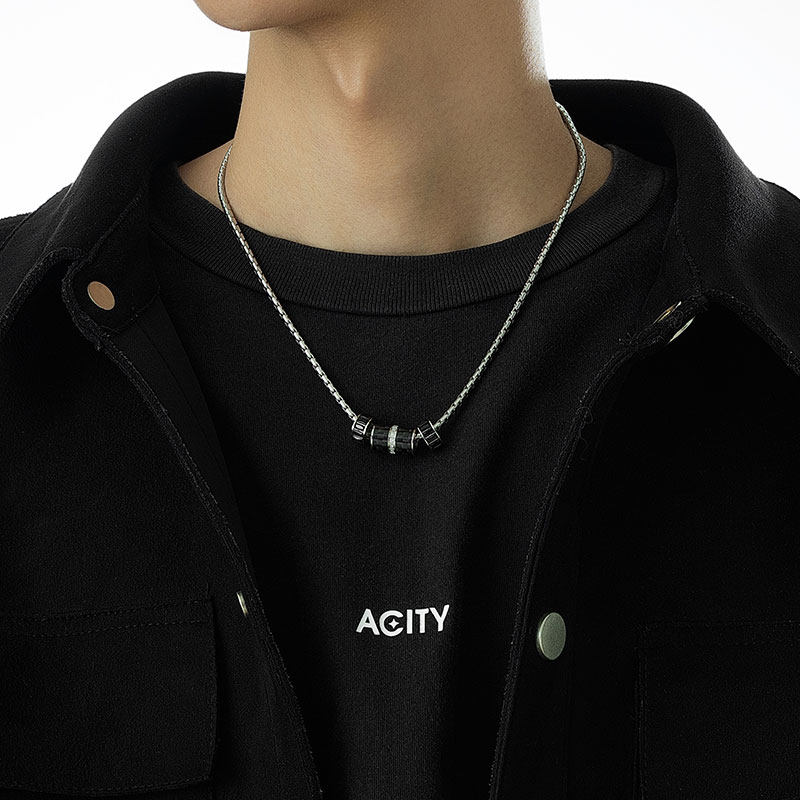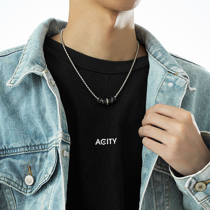 ACITY喜城小众轻奢黑色小蛮腰项链男生高级感圆环锁骨链毛衣链女
