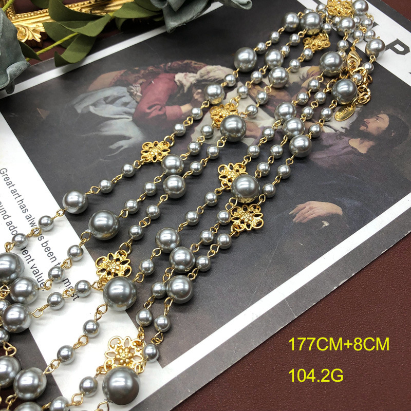 长款琉璃珍珠项链秋冬法式小众设计雕刻花纹毛衣链两色可选