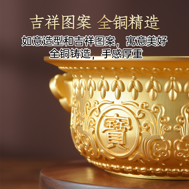 金陵金箔铜制聚宝盆八福琉璃招财聚财摆件办公室开业乔迁商务礼物