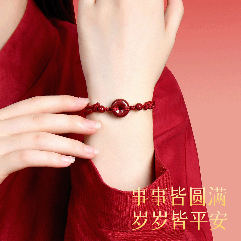普陀山本命年红绳手链朱砂平安扣转运珠手串红色编织绳蛇礼物男女