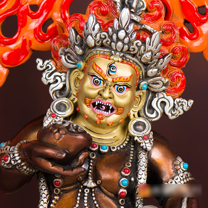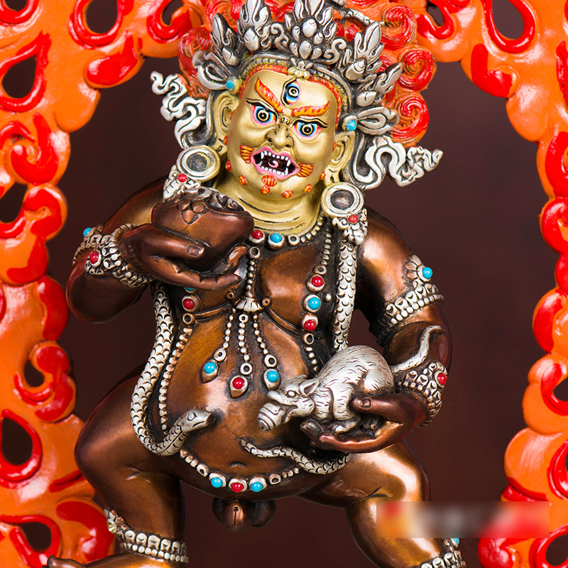 黑财神铜像 家用现代紫铜镀银7寸五姓财神五路财神摆件