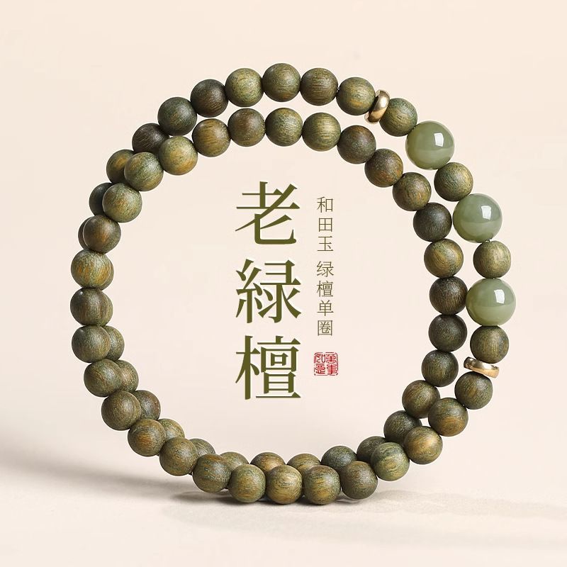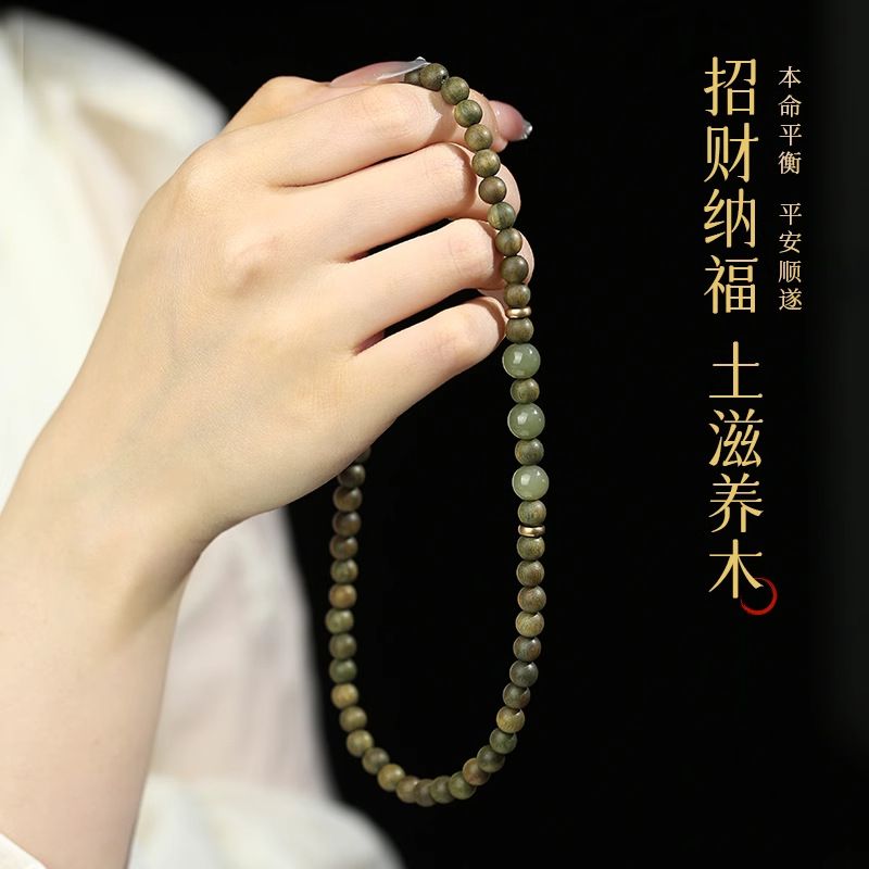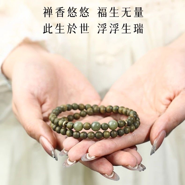 新中式新款和田玉转运珠佛珠手链天然绿檀木双圈手串男女同款爆款