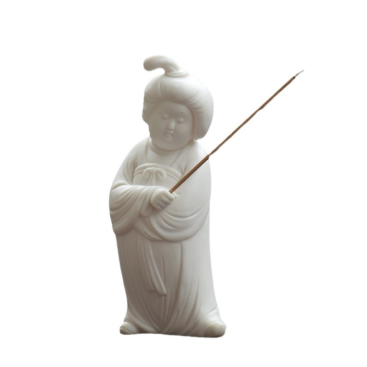 创意陶瓷古典仕女摆件玄关禅意家居饰品客厅书房香插插香座工艺品