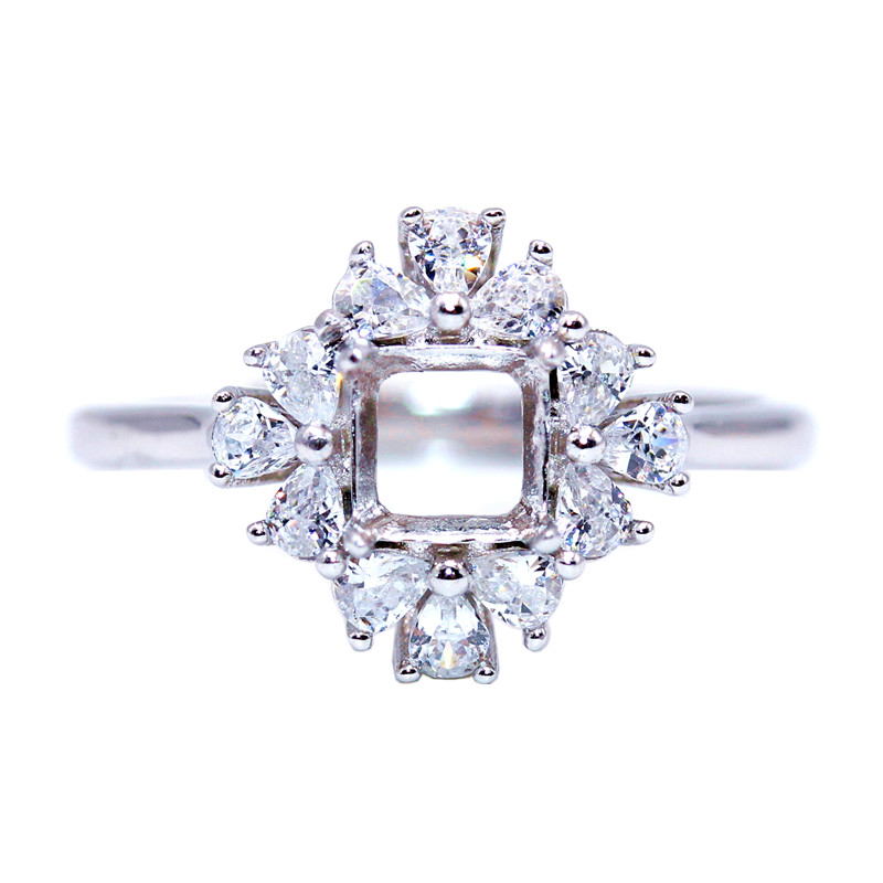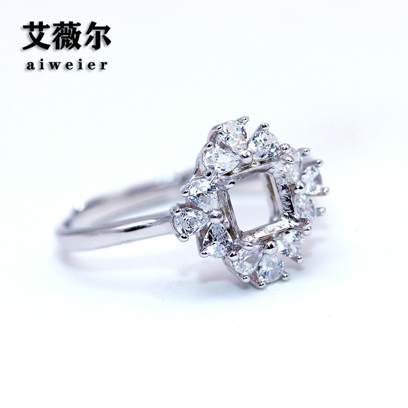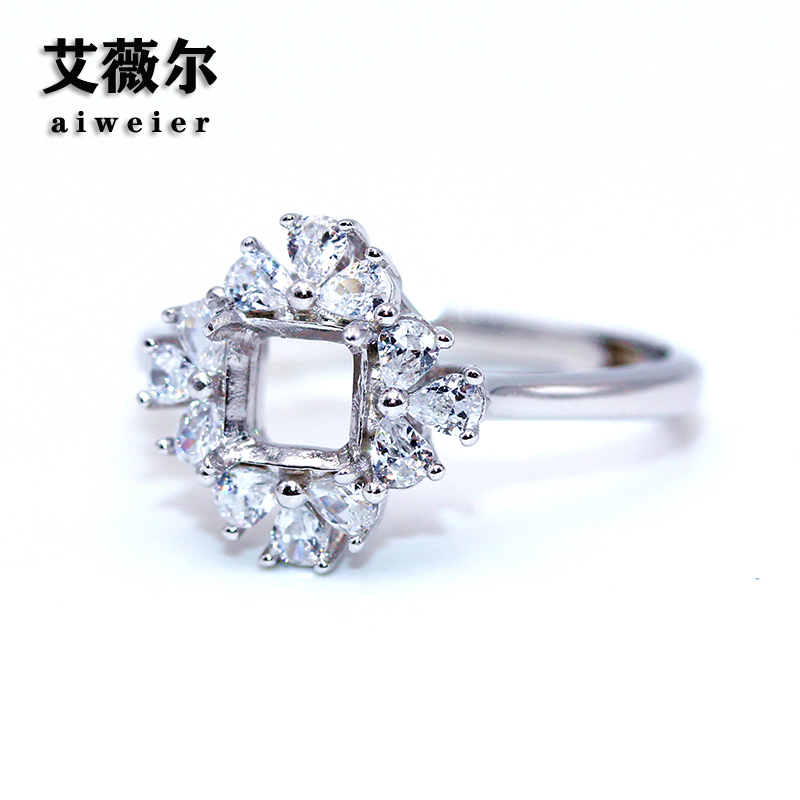 精工s925纯银戒指空托方形枕形定制加工宝石镶嵌18k金戒托5-6-7mm