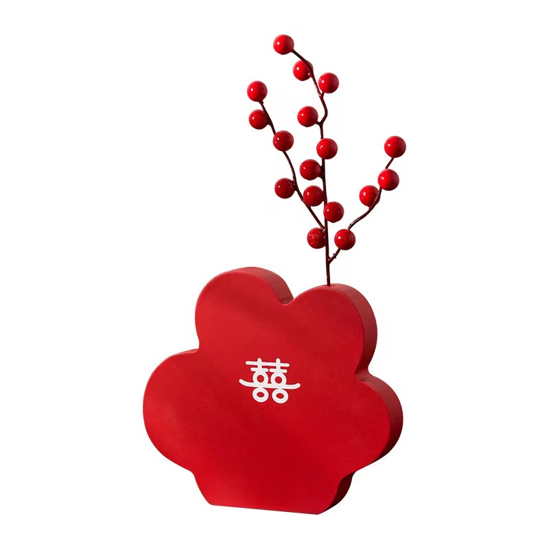 喜字木质花瓶创意结婚客厅婚礼摆件婚房订婚布置装饰桌面用品摆件