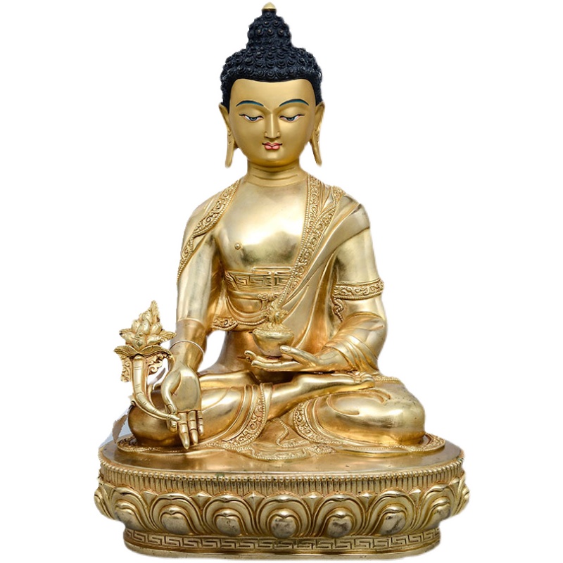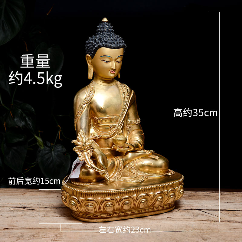 药师铜像尼泊尔手工家用10寸铜镀金家用室内家居摆件