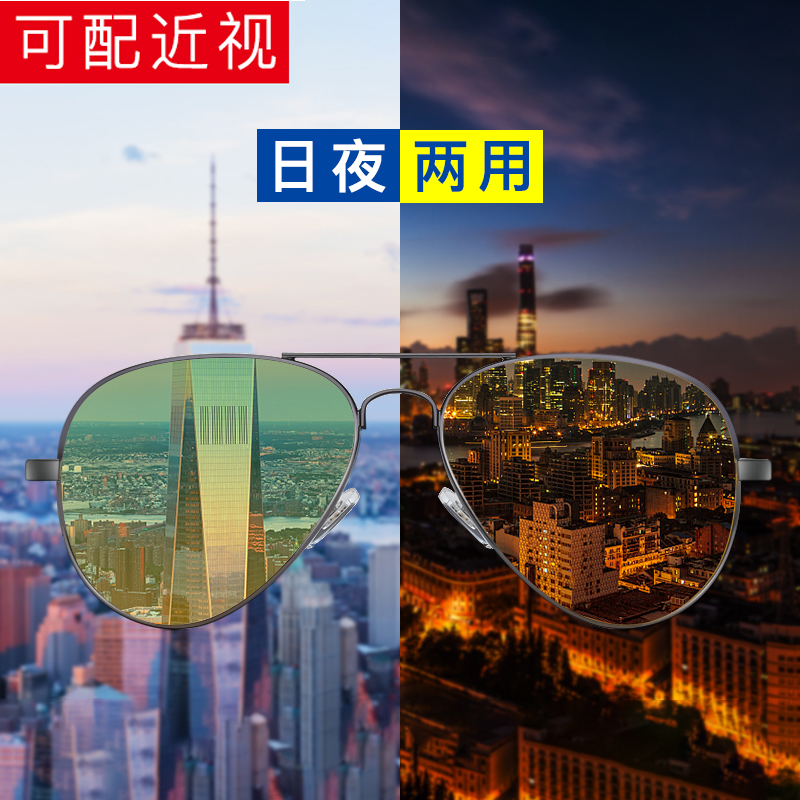 定制度数日夜两用近视夜视镜偏光太阳墨镜男夜间驾驶开车专用眼镜