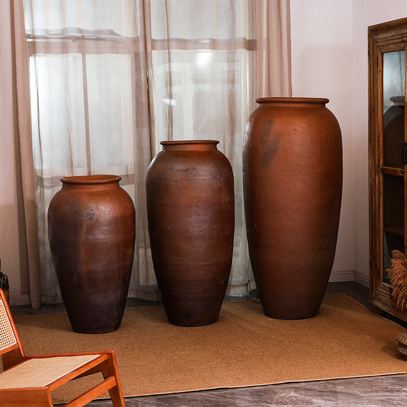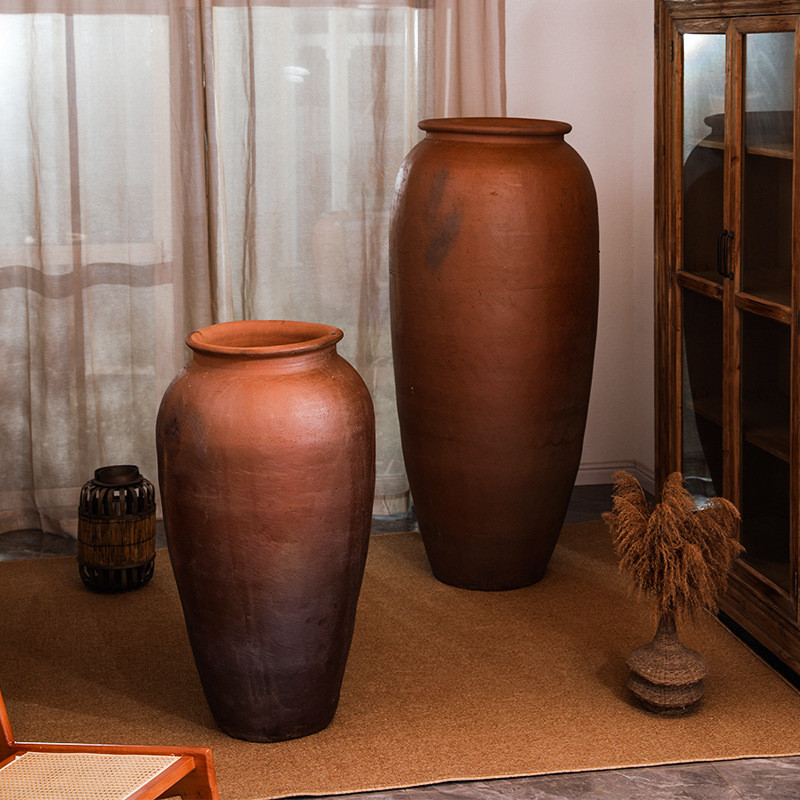 热销超大落地土陶瓶色翁咖瘦高1.6米组合陶缸仛寂大罐花瓶酒店大