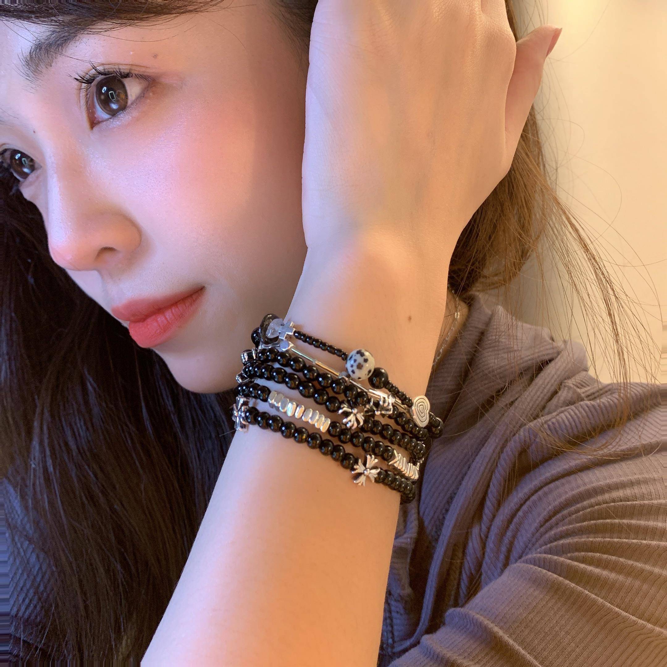 【棠洛】多层叠戴手链弹力手链可调节十字架串珠链子复古手饰