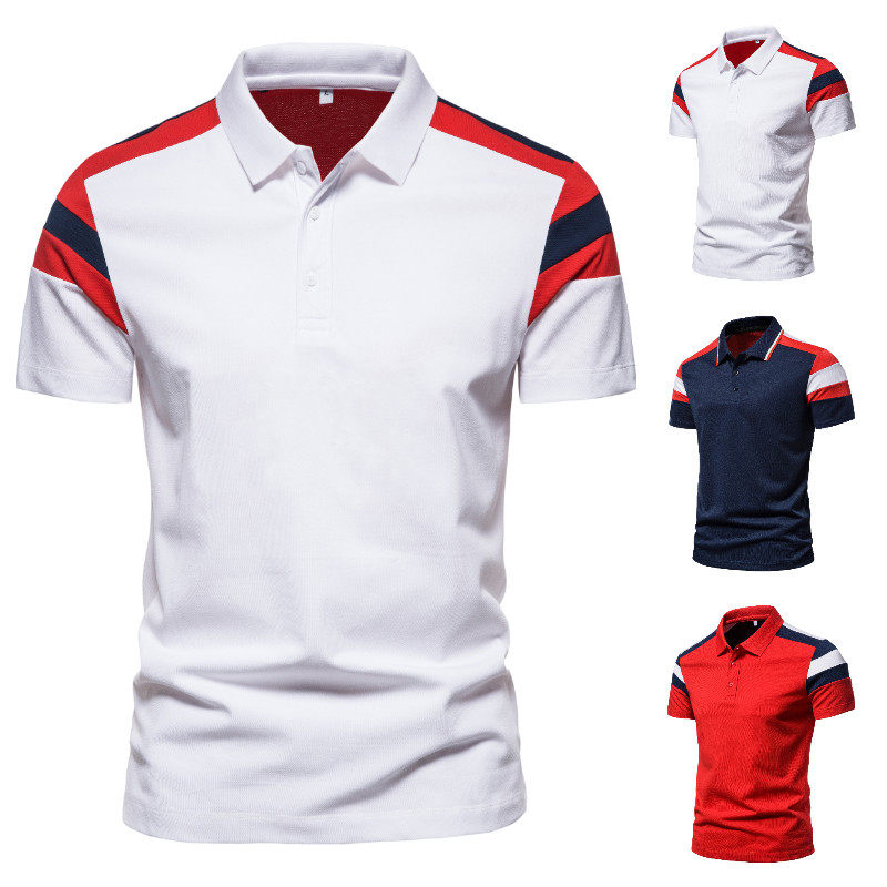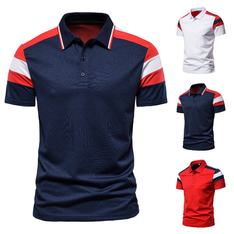 外贸欧码跨境夏季男士时尚红色块短袖翻领T恤POLO衫Men's T shirt