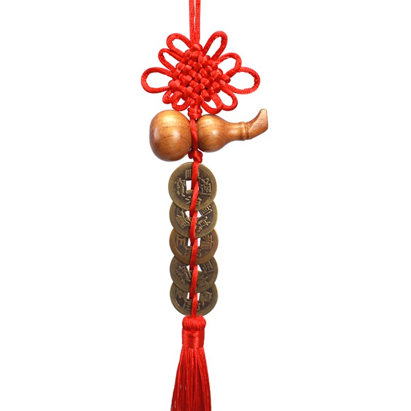 极速五帝钱门对门挂件纯铜桃木葫芦中国结挂件真品铜Y钱家用正宗