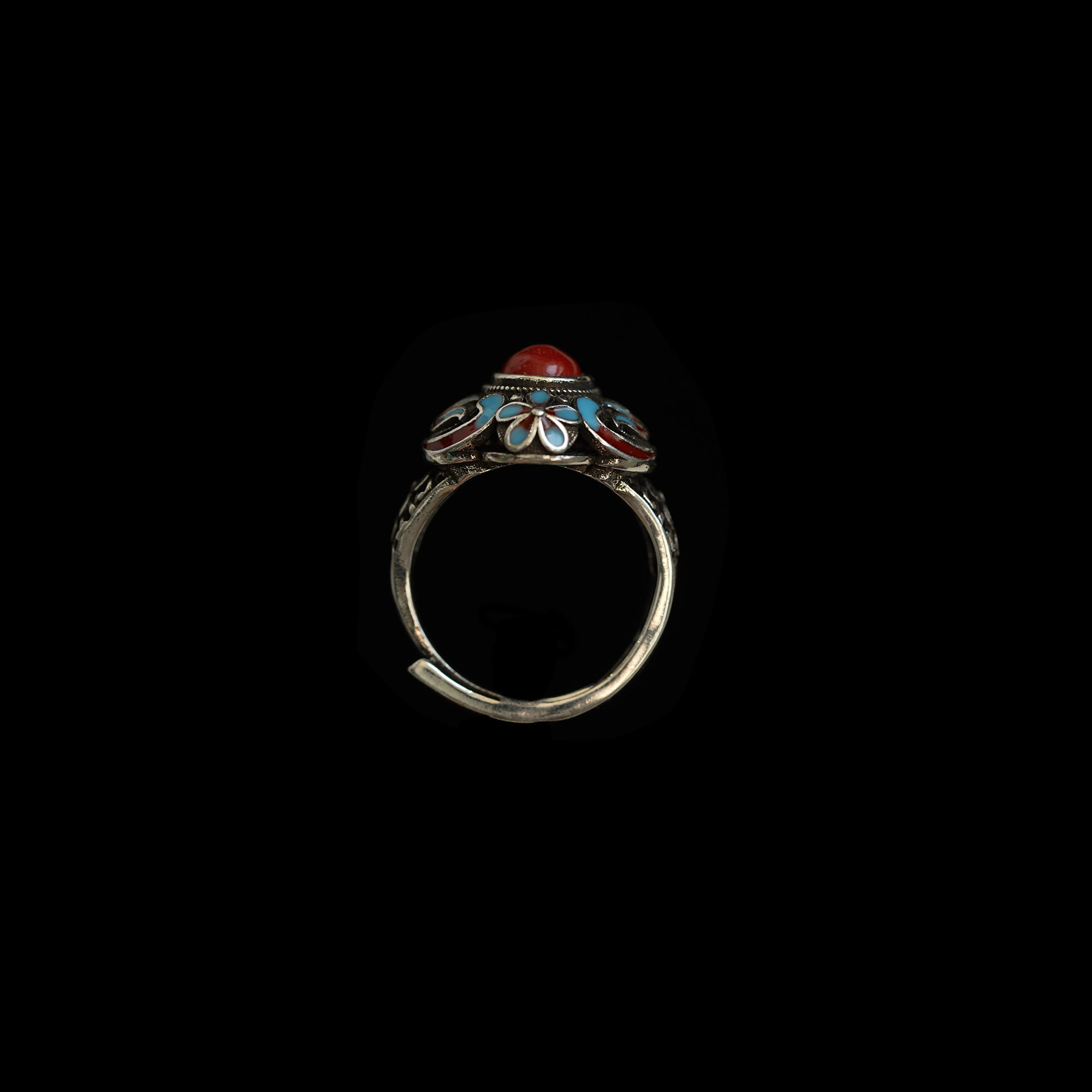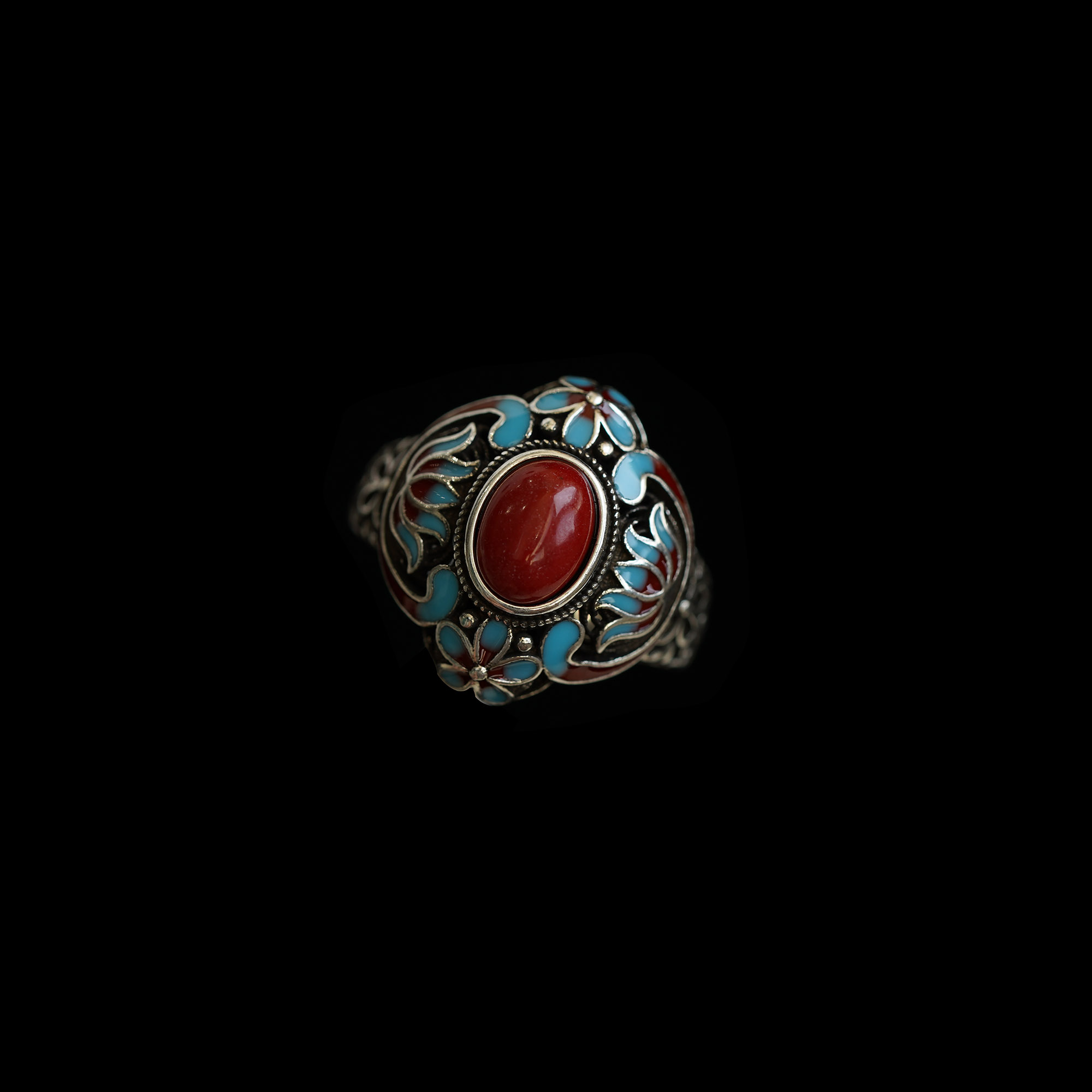 Vintage古着Blue enamel red turquoise ring复古戒指