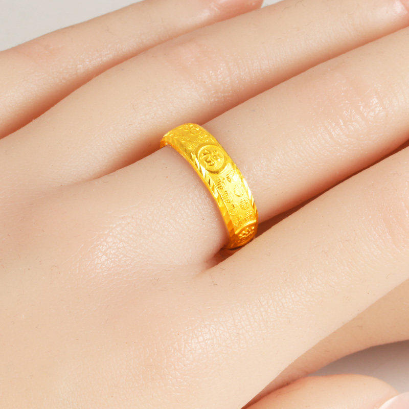 国潮黄金戒指男女款9999足金食指环百福字素圈送妈妈爸爸生日礼物