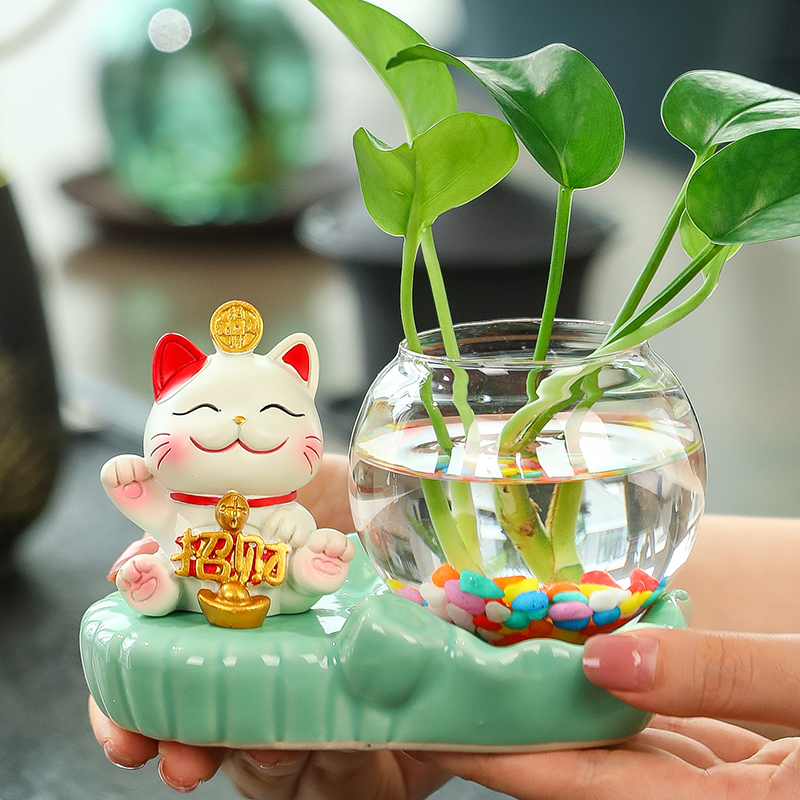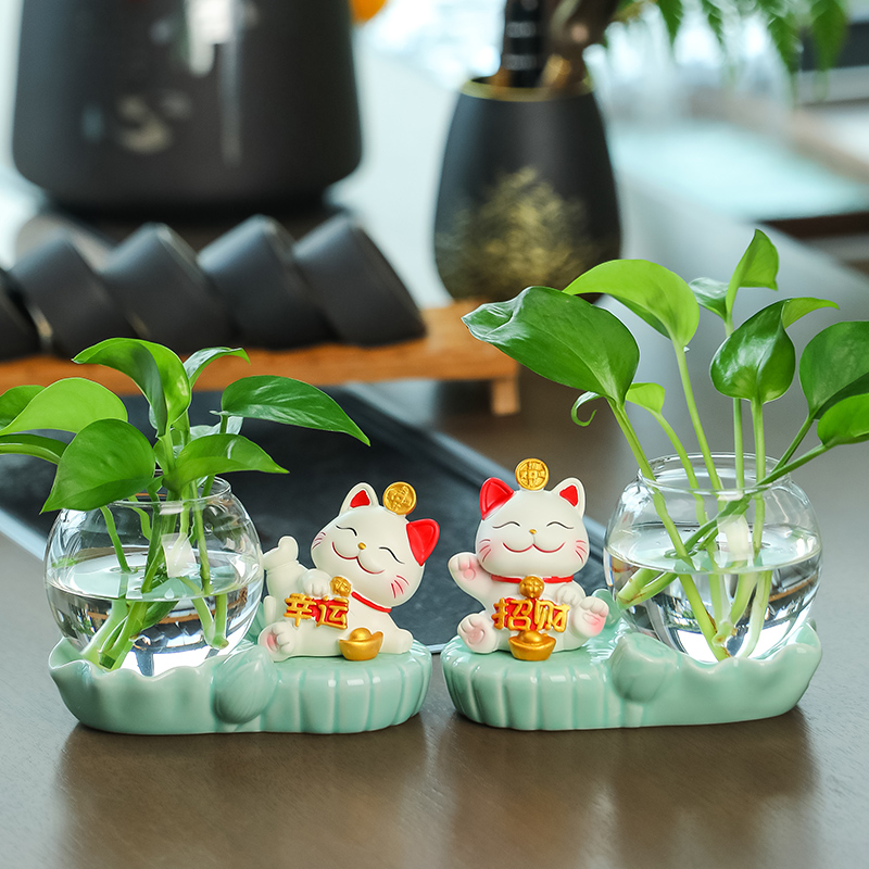 创意招财猫小摆件治愈系家居客厅电视柜酒柜办公室桌面工位装饰品