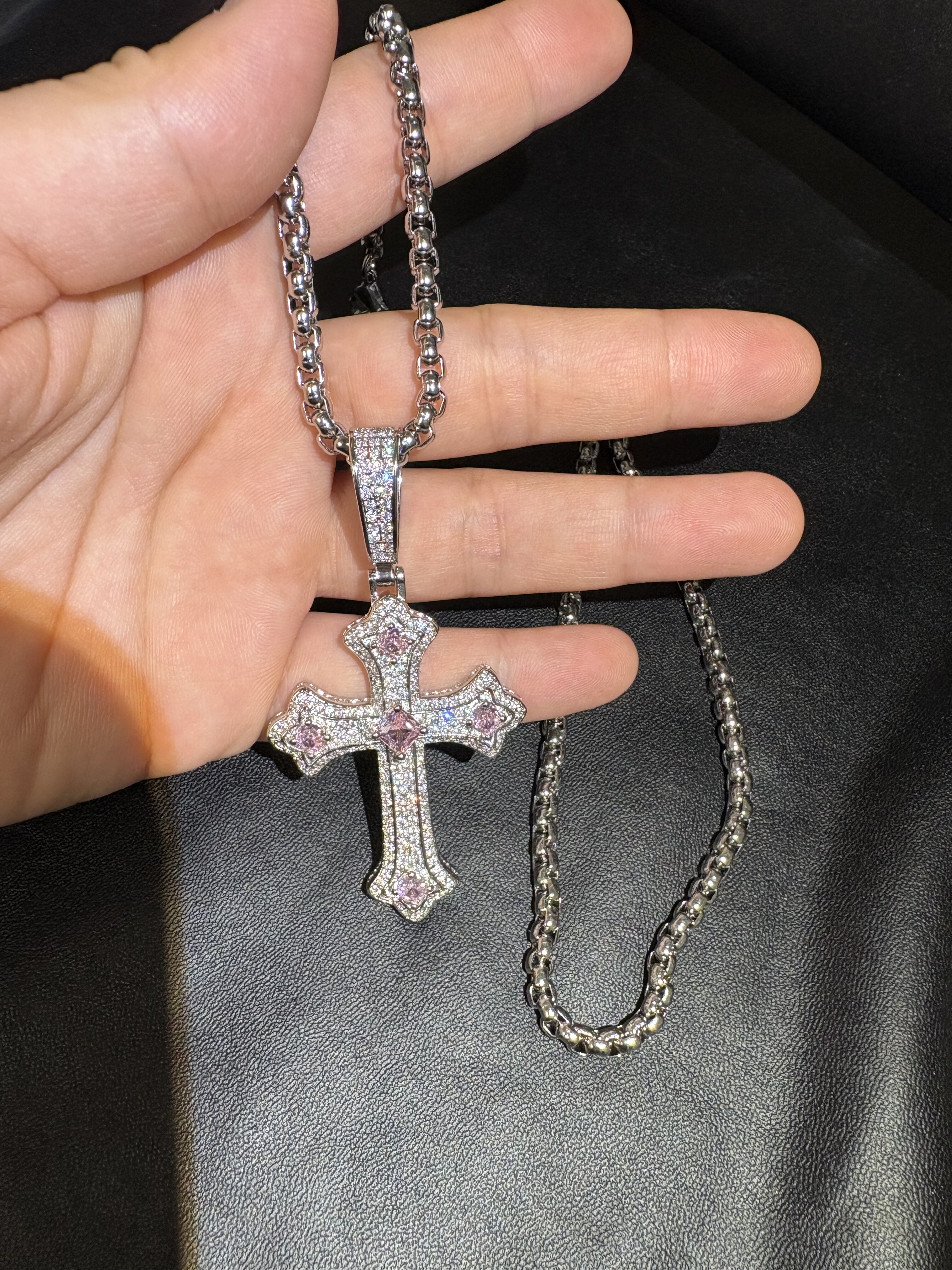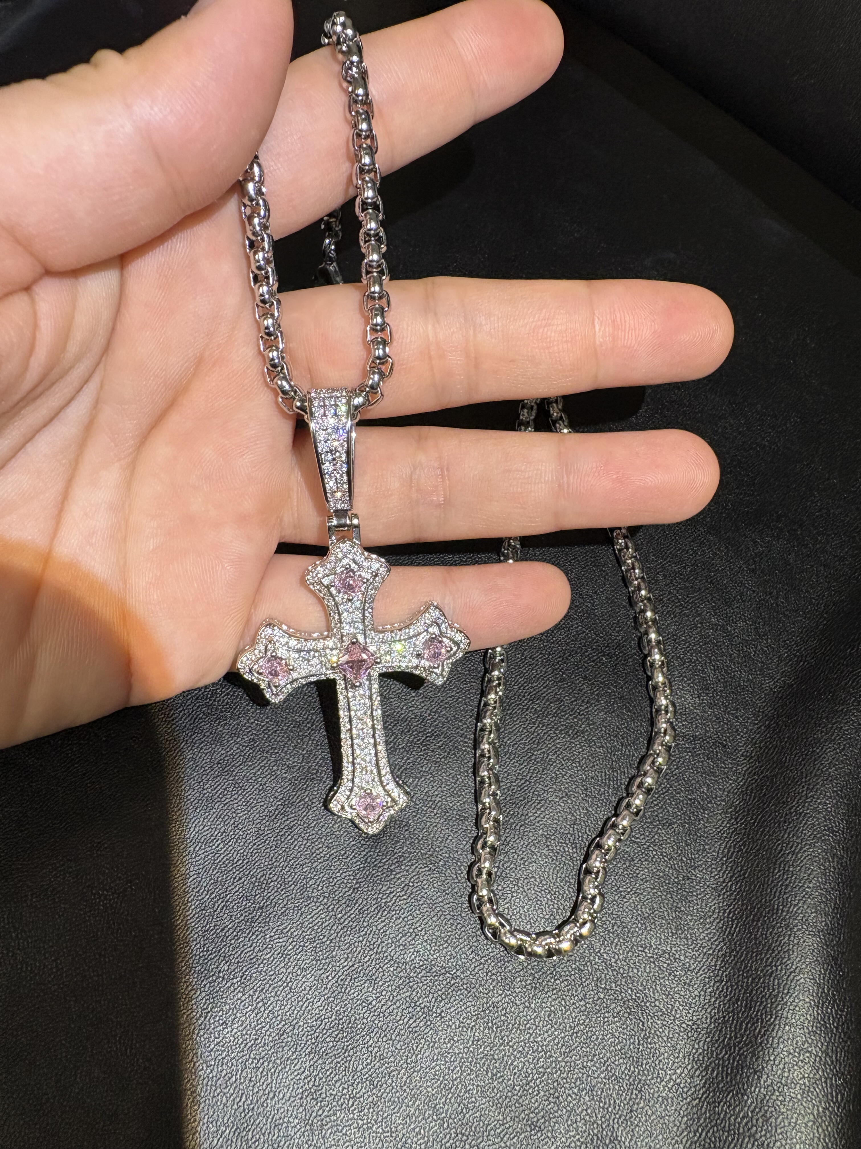欧美饰品嘻哈十字型镶镶嵌吊坠项链复古小众礼物百搭网红钻紫色