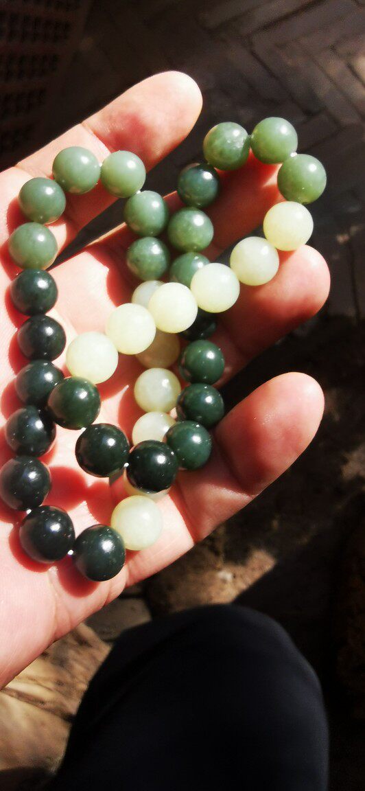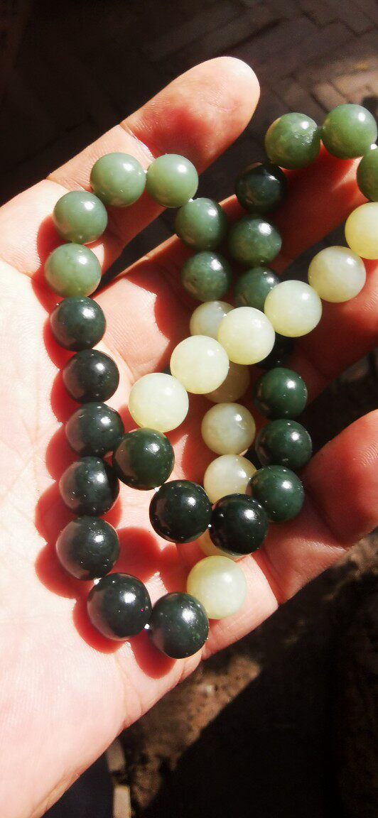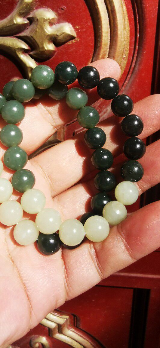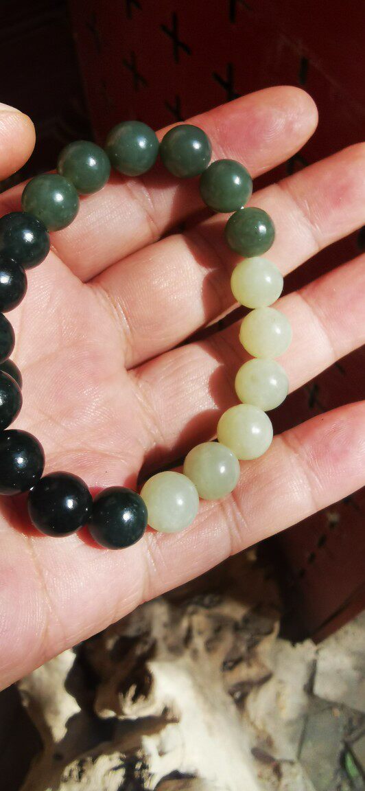 和田玉且末料十毫米渐变手串,从黑青到青白,个性手串 识货的来