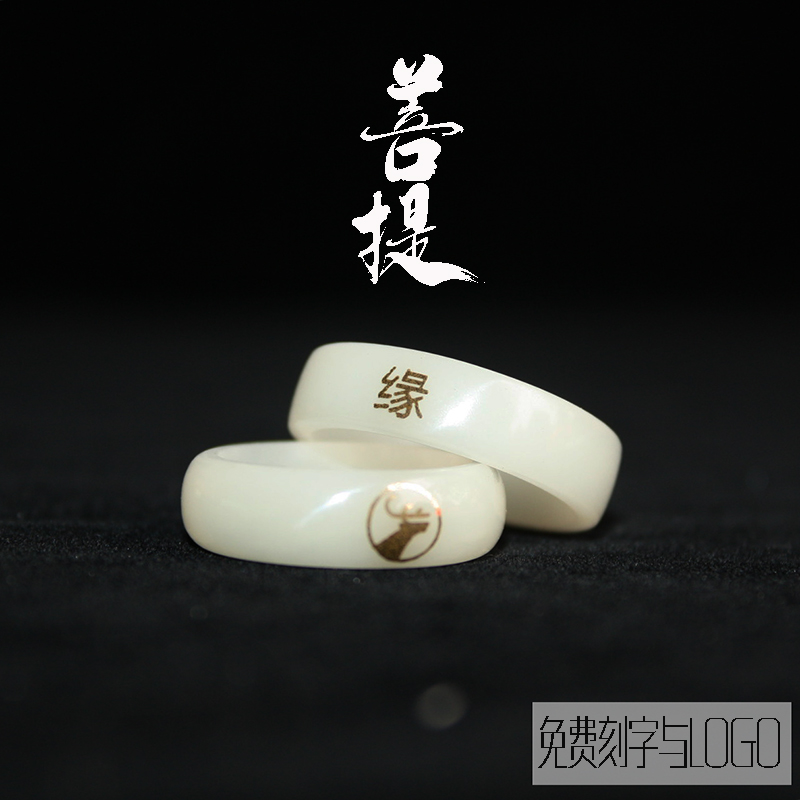 天然白玉菩提根成品文玩手串跑环刻字男女情侣礼物抖戒指指环饰品