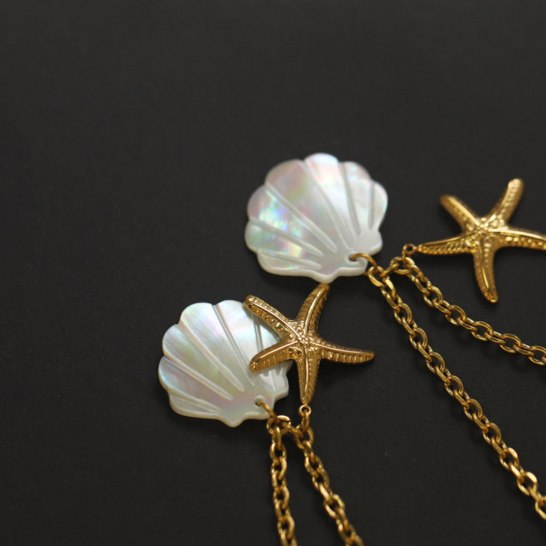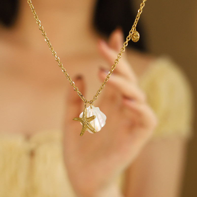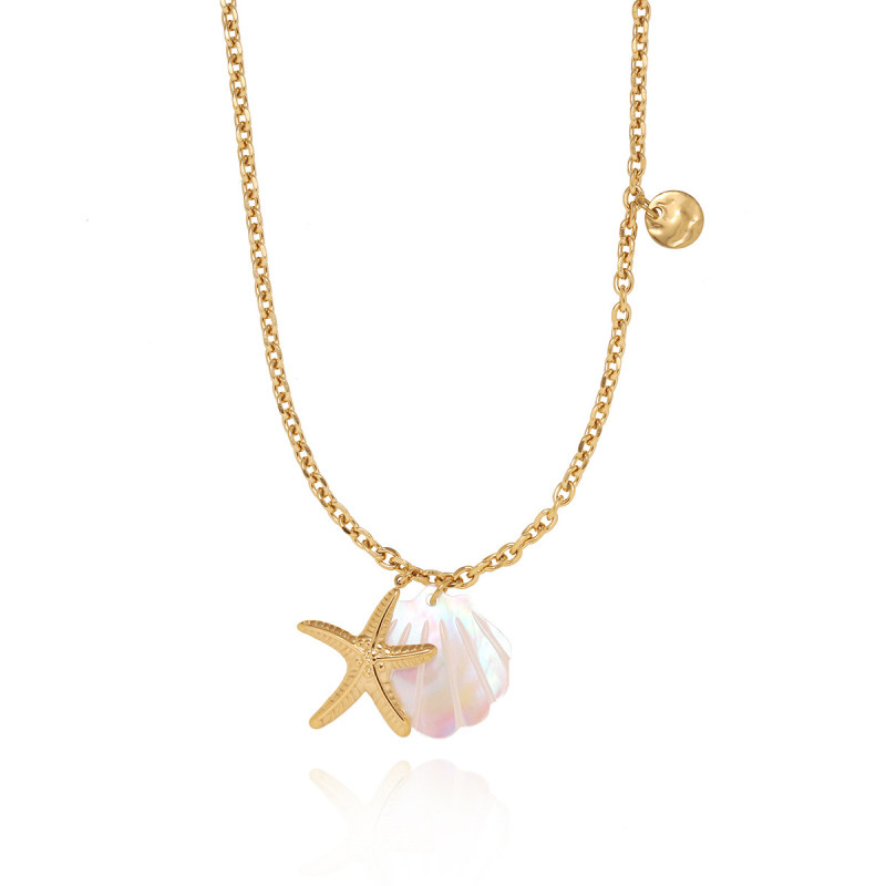欧美度假风~海星贝壳胖大星海洋钛钢项链