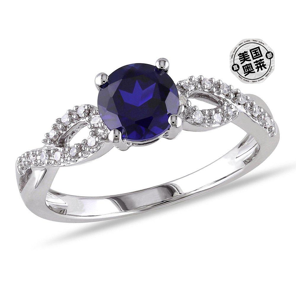 自营 mimi & max1/10 CT TW 10K 白金钻石和人造蓝色蓝宝石订婚戒