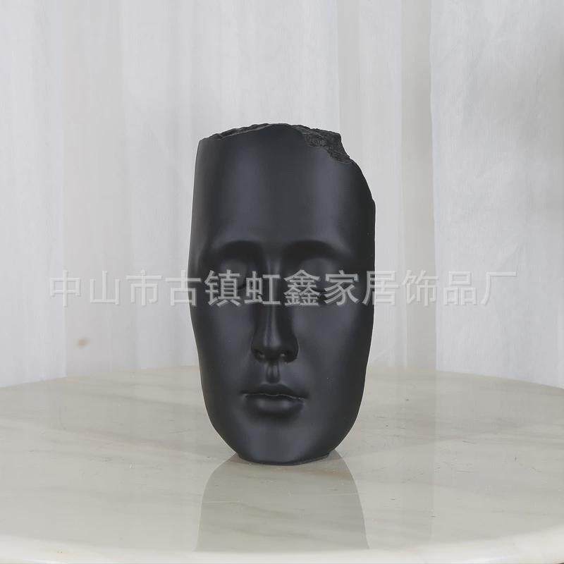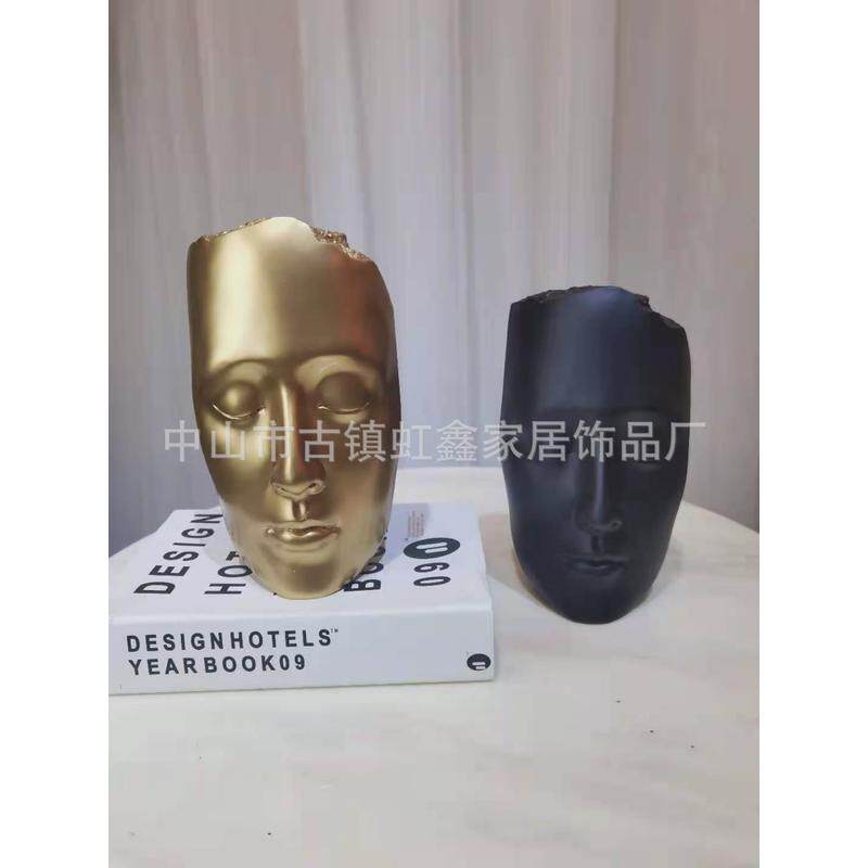 家居现代极简玄关房间客厅样板人脸人像黑色金色面具雕塑摆件装饰