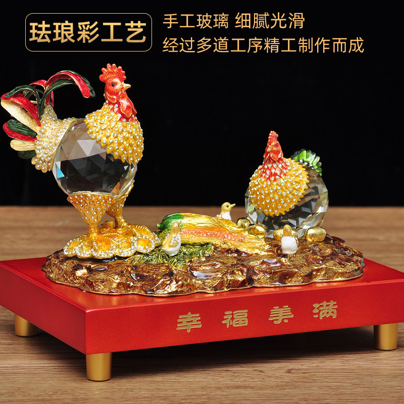 珐琅彩大公鸡摆件招财母鸡工艺品家居客厅玄关装饰品乔迁新居礼品