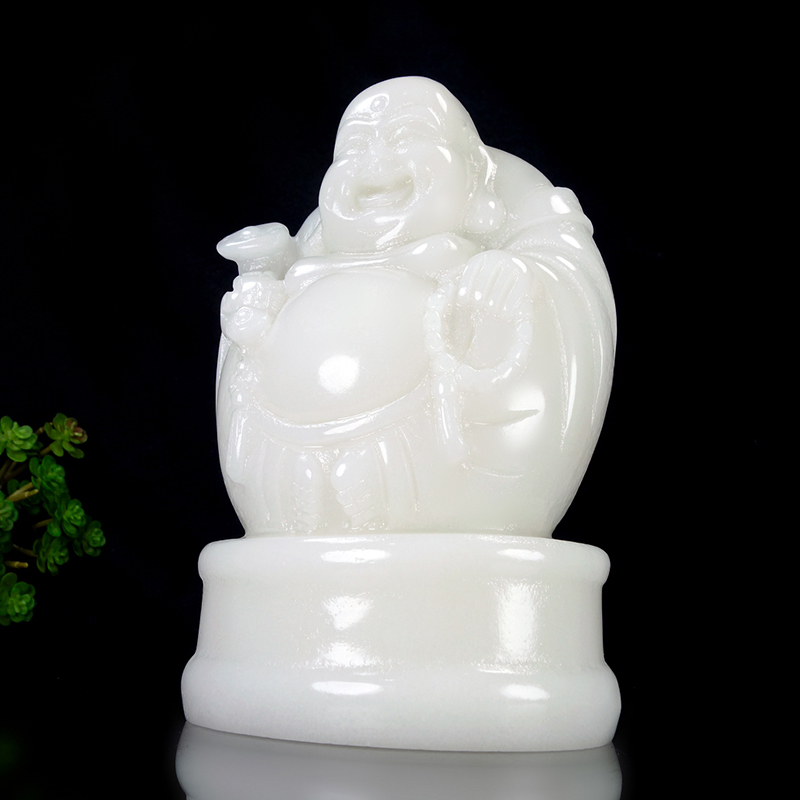 阿富汗白玉弥勒佛摆件佛像客厅家居玄关玉石佛家居装饰礼品工艺品