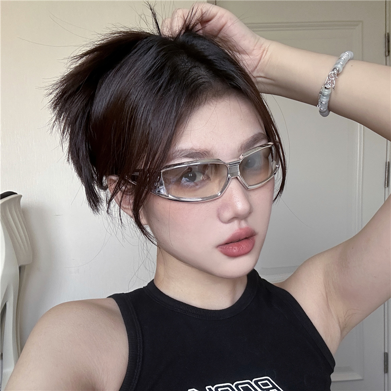 复古大框骑行户外太阳眼镜Y2K未来风网红墨镜女ins科技感银色遮阳