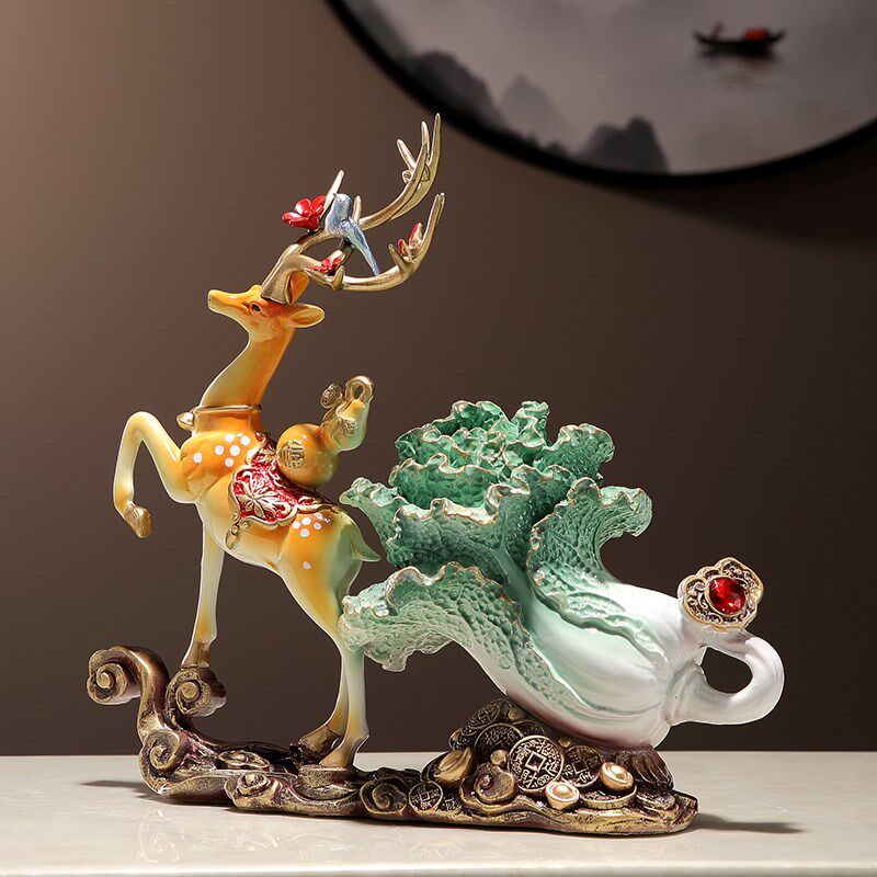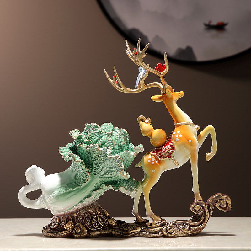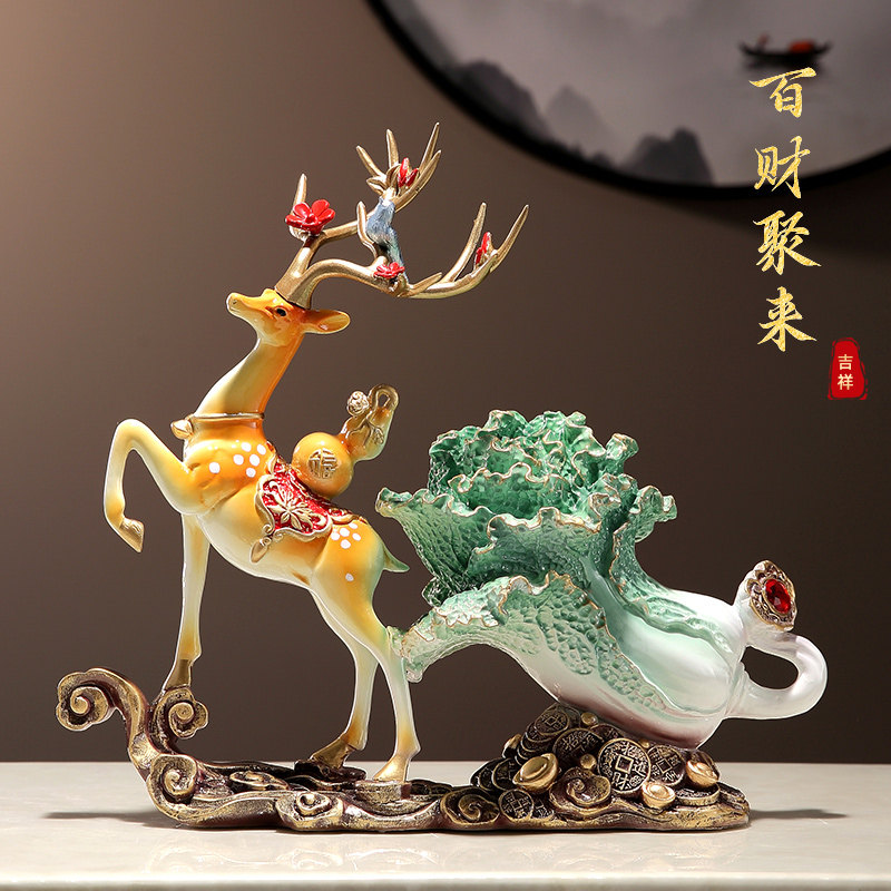 鹿拉白菜摆件招财百财客厅酒柜办公室装饰品开业礼物乔迁新居礼品