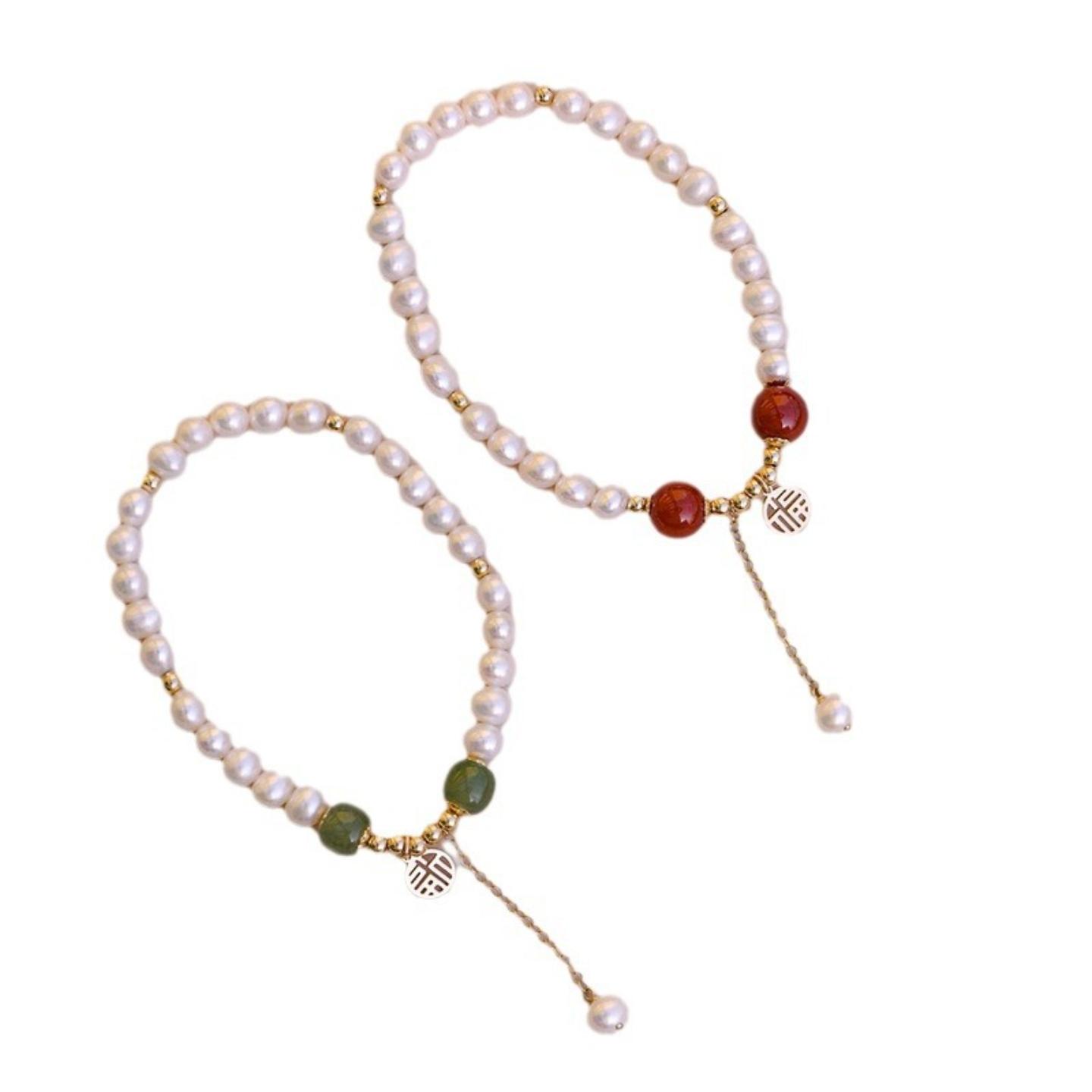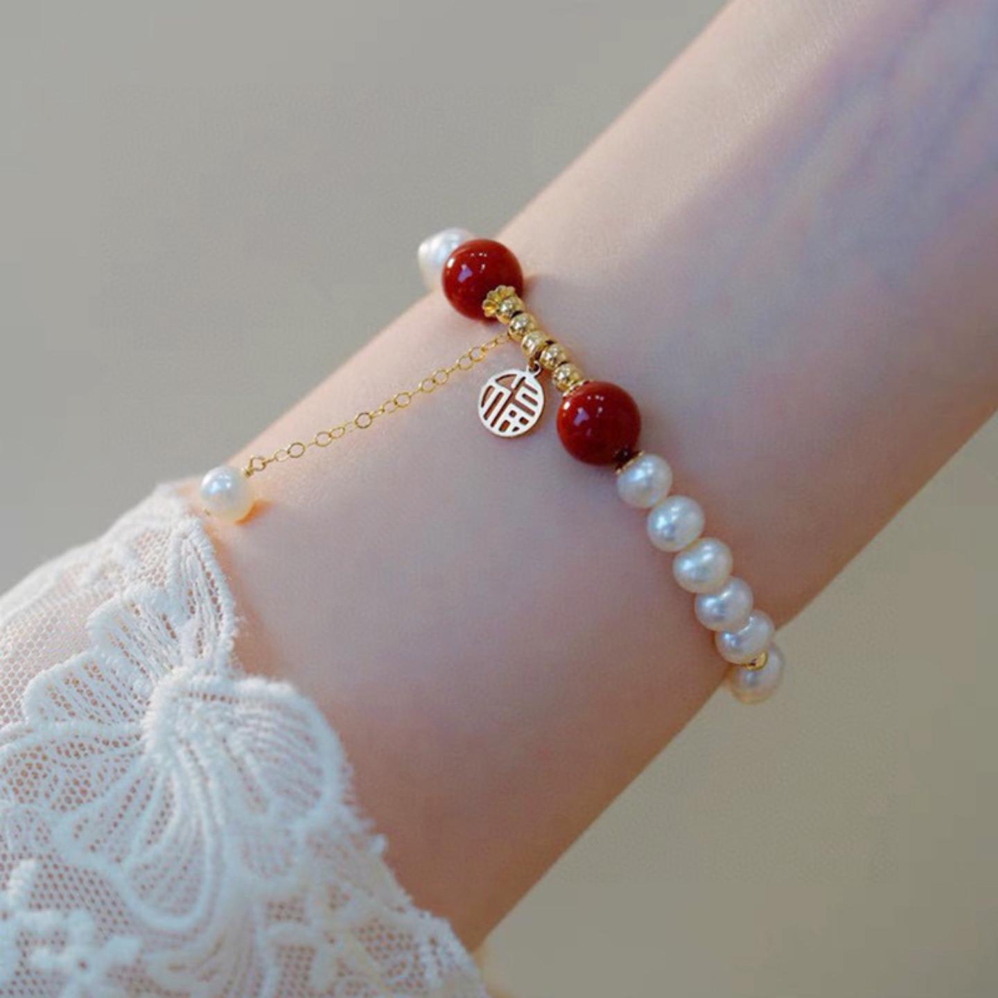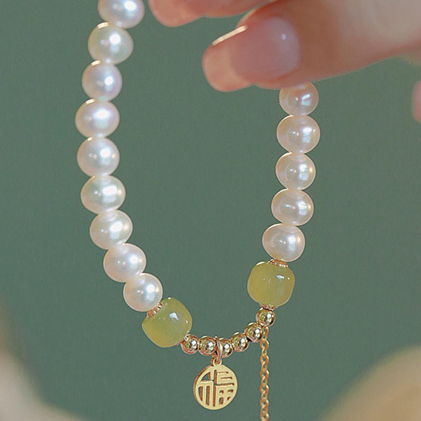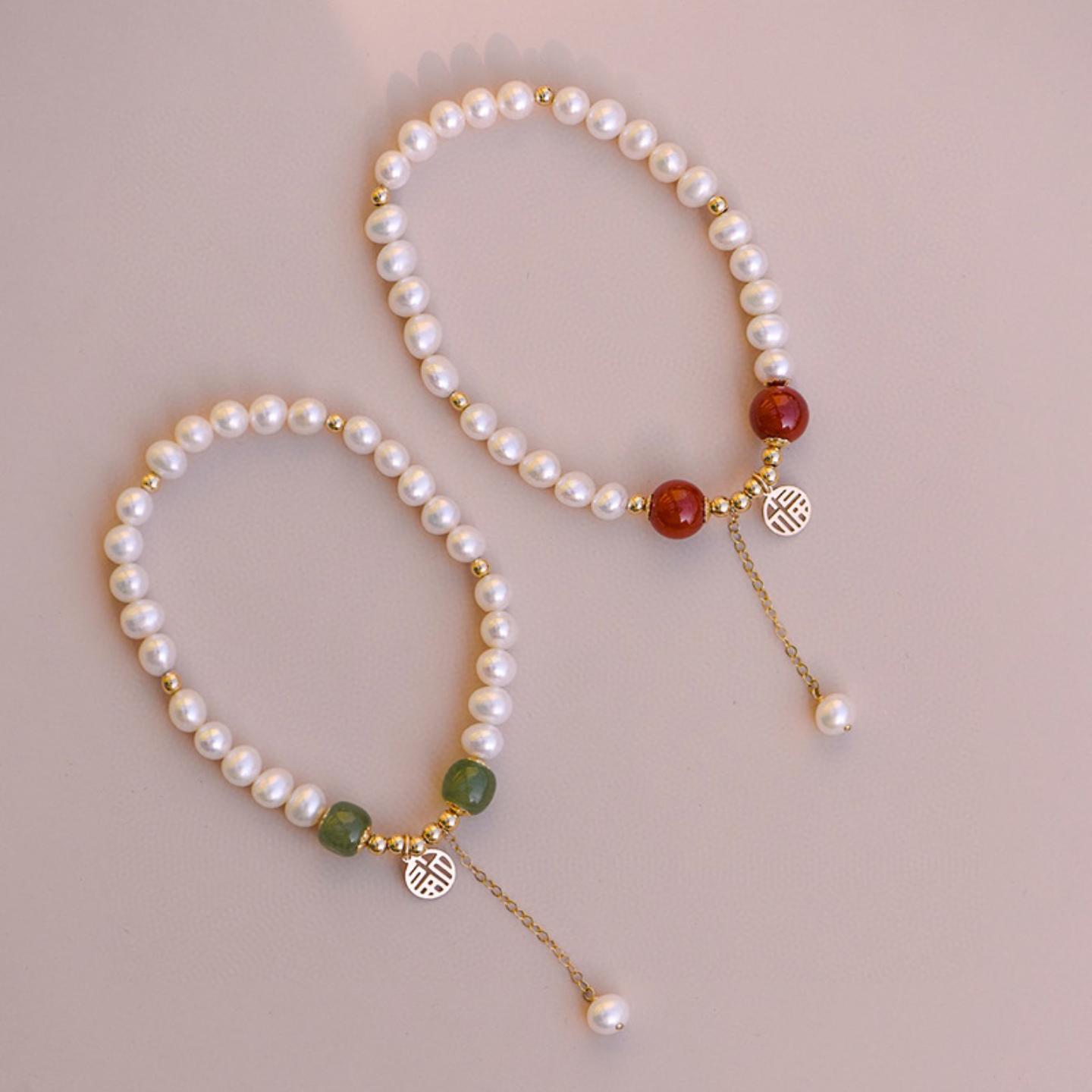 福牌吊坠天然淡水珍珠和田玉手链14K注金时尚复古简约新中式手串