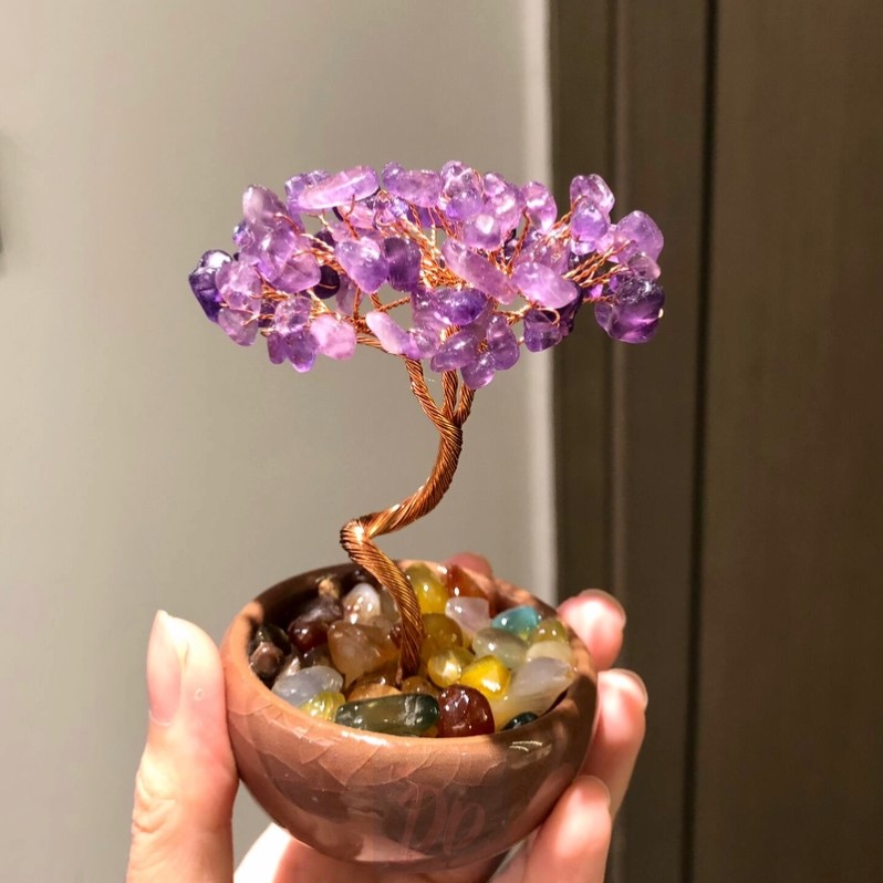 【红薯推荐】办公室聚宝盆茶盏底座水晶发财树摆件桌面水晶生命树