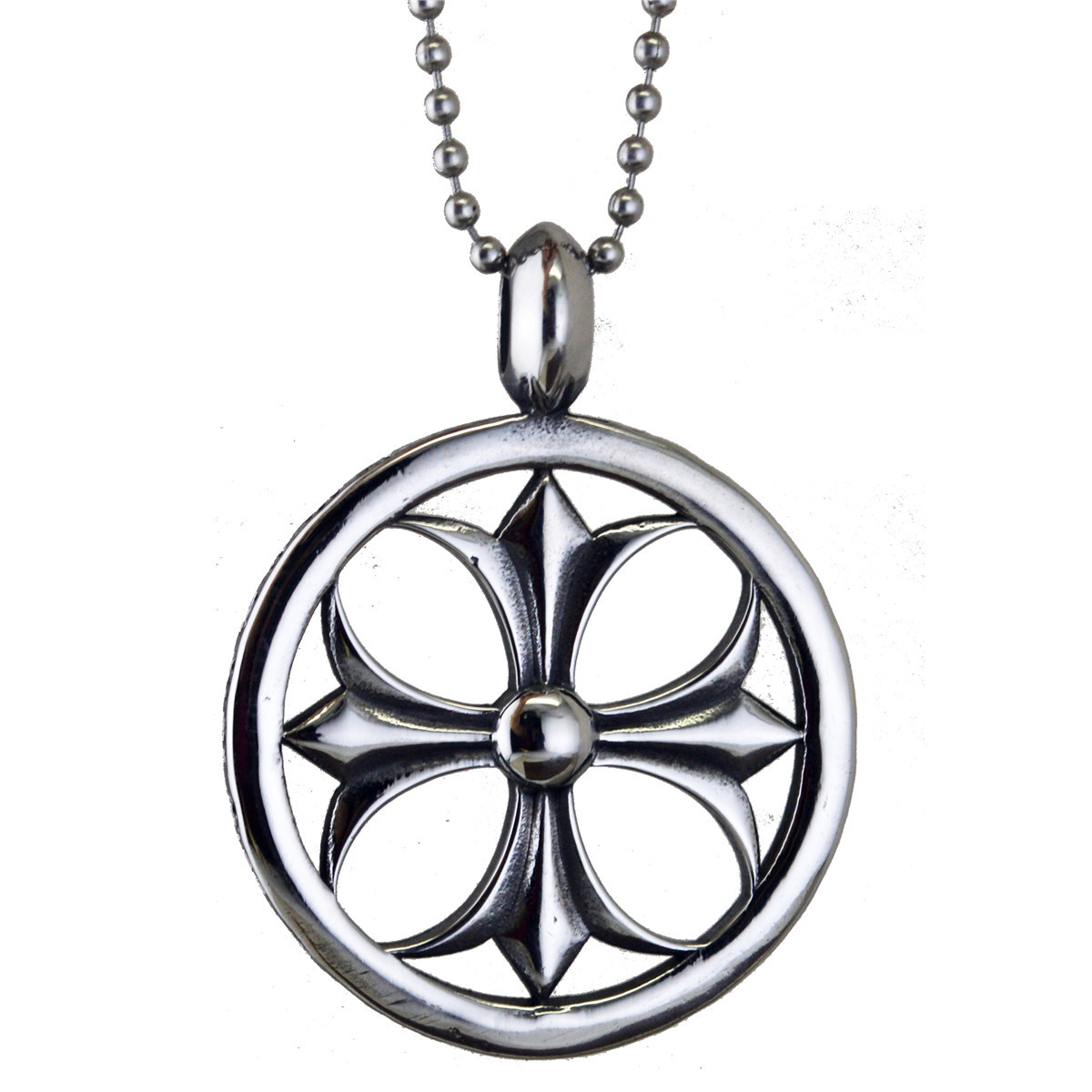 指南针罗盘钛钢吊坠六芒星圆形维京圆筒缆绳宇航员镶钻项链STN974