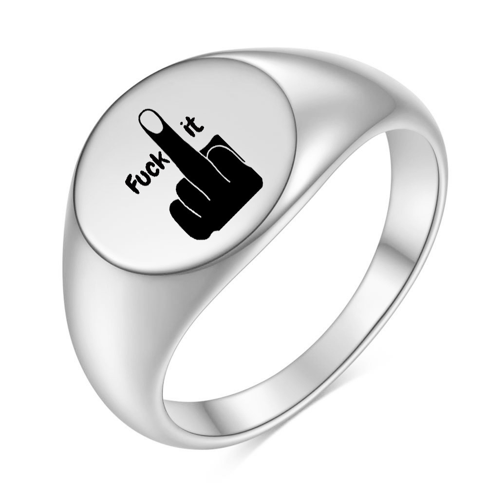 新款亚马逊跨境欧美12MM椭圆中指FUCK戒指男女创意时尚百搭女