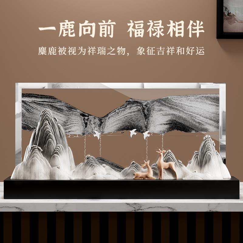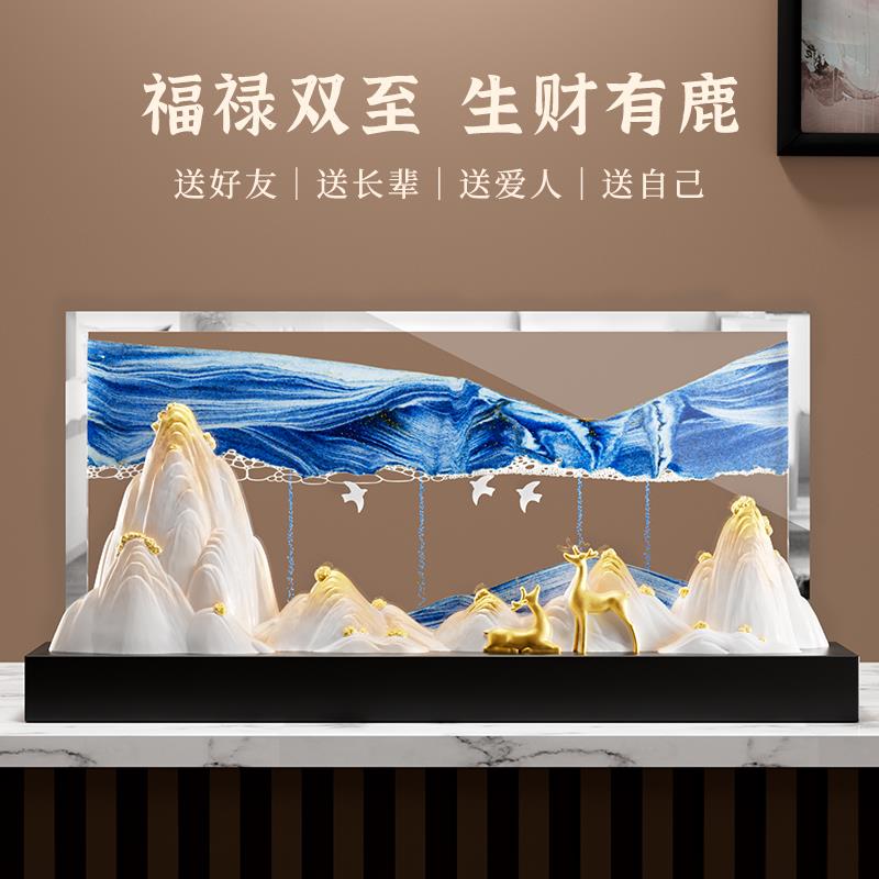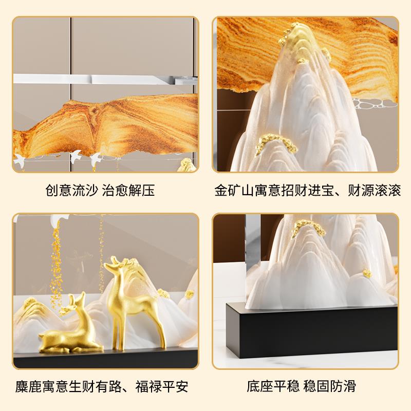 背靠金山流沙画摆件高级感客厅玄关酒柜装饰品办公室桌面轻奢礼物