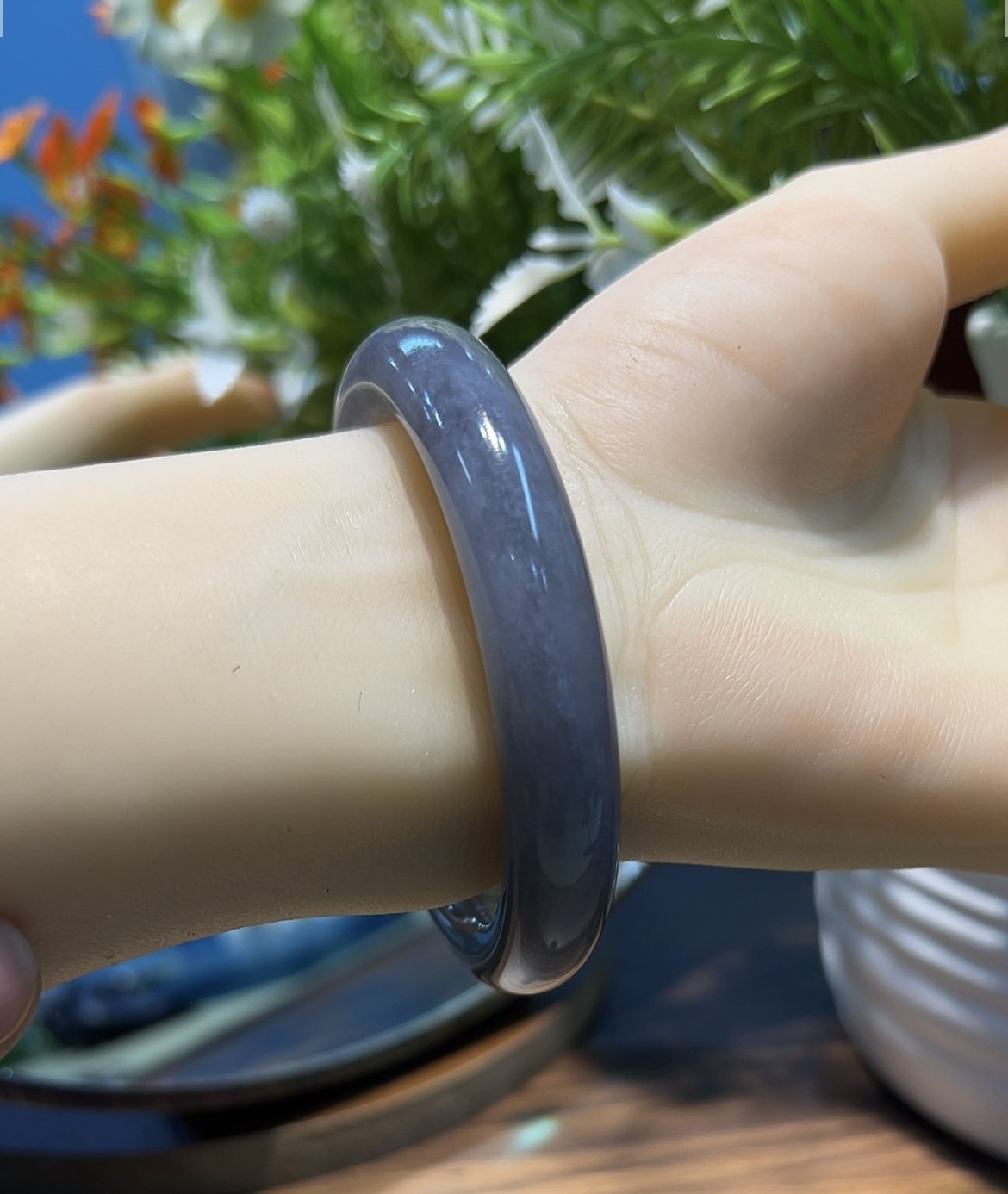 新疆直发正品烟紫手镯天然玉石老坑料条宽12mm帝王紫镯子带证书
