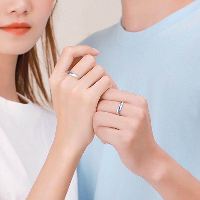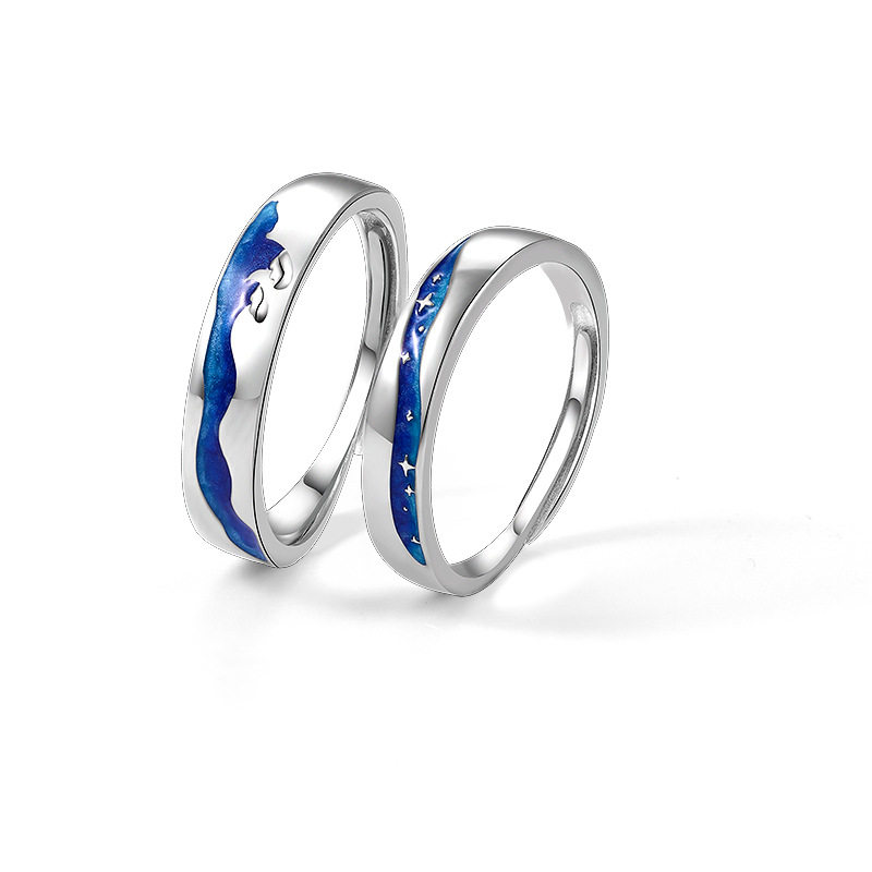 亿万星河情侣戒指男女一对纯银情侣对戒时尚可刻字滴胶指环送女友