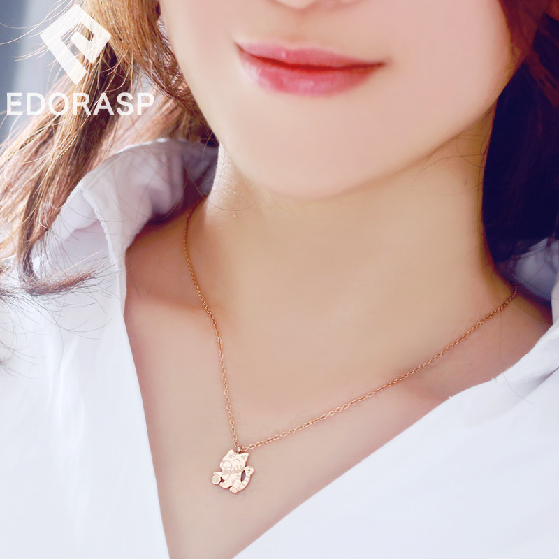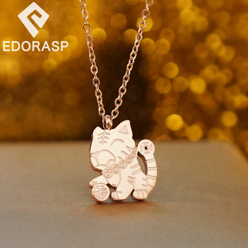 老虎钛钢项链女不掉色招财挂坠玫瑰金生肖彩金吊坠转运玄学防过敏