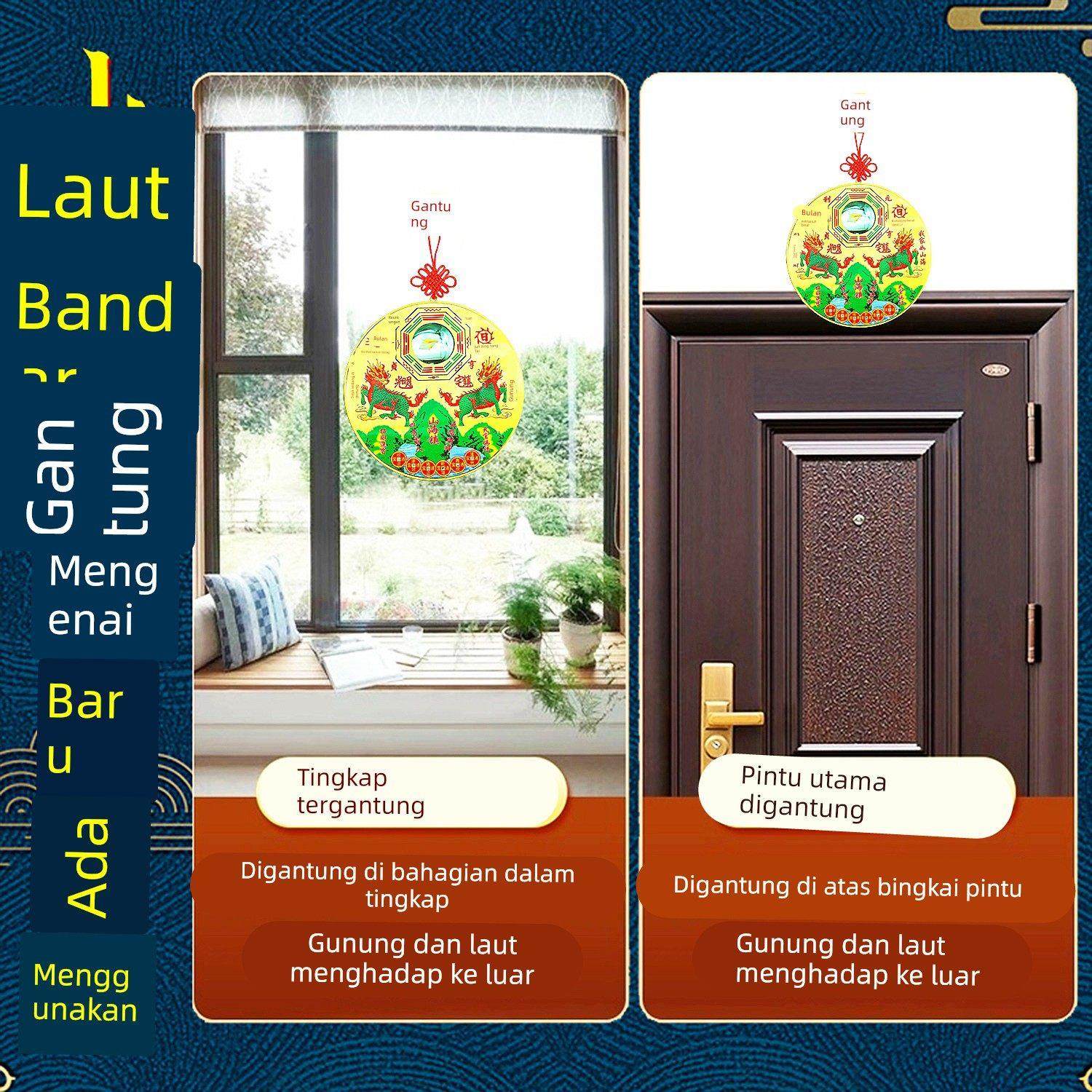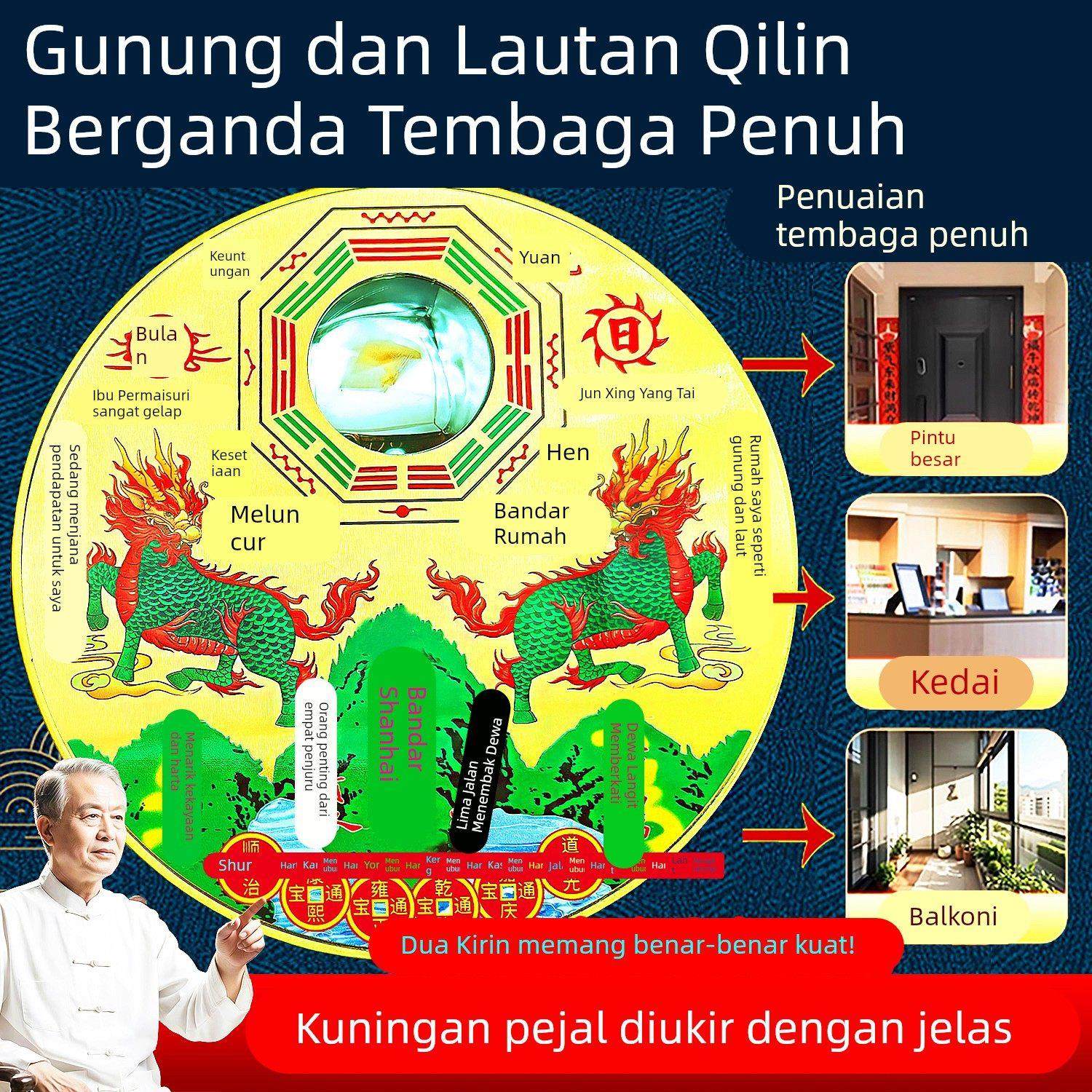 公母双麒麟山海镇图纯黄铜圆形八卦镜客厅摆件室外内大门窗户挂件
