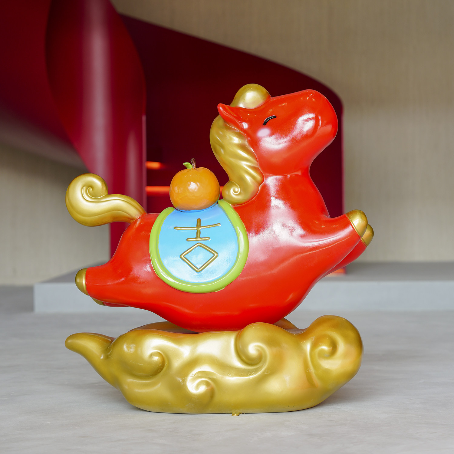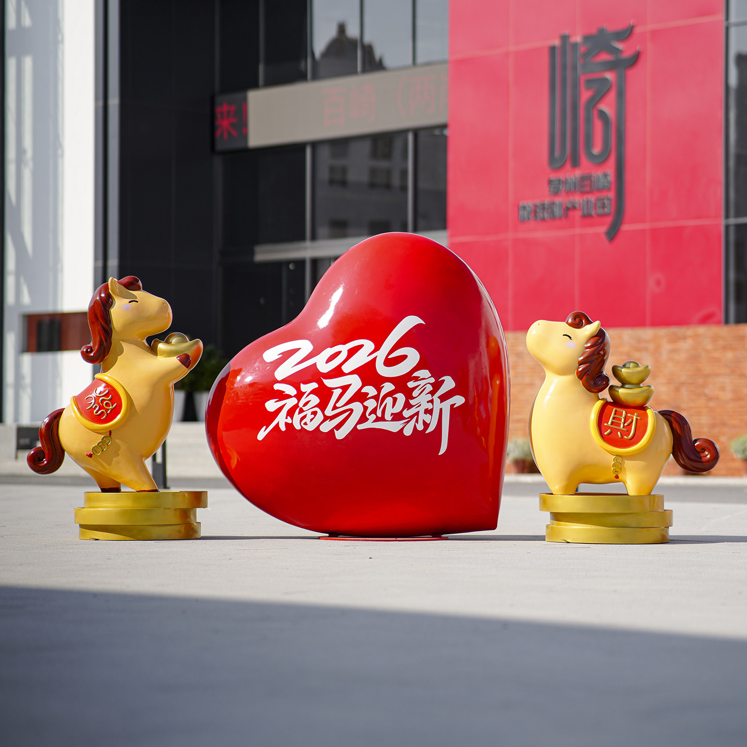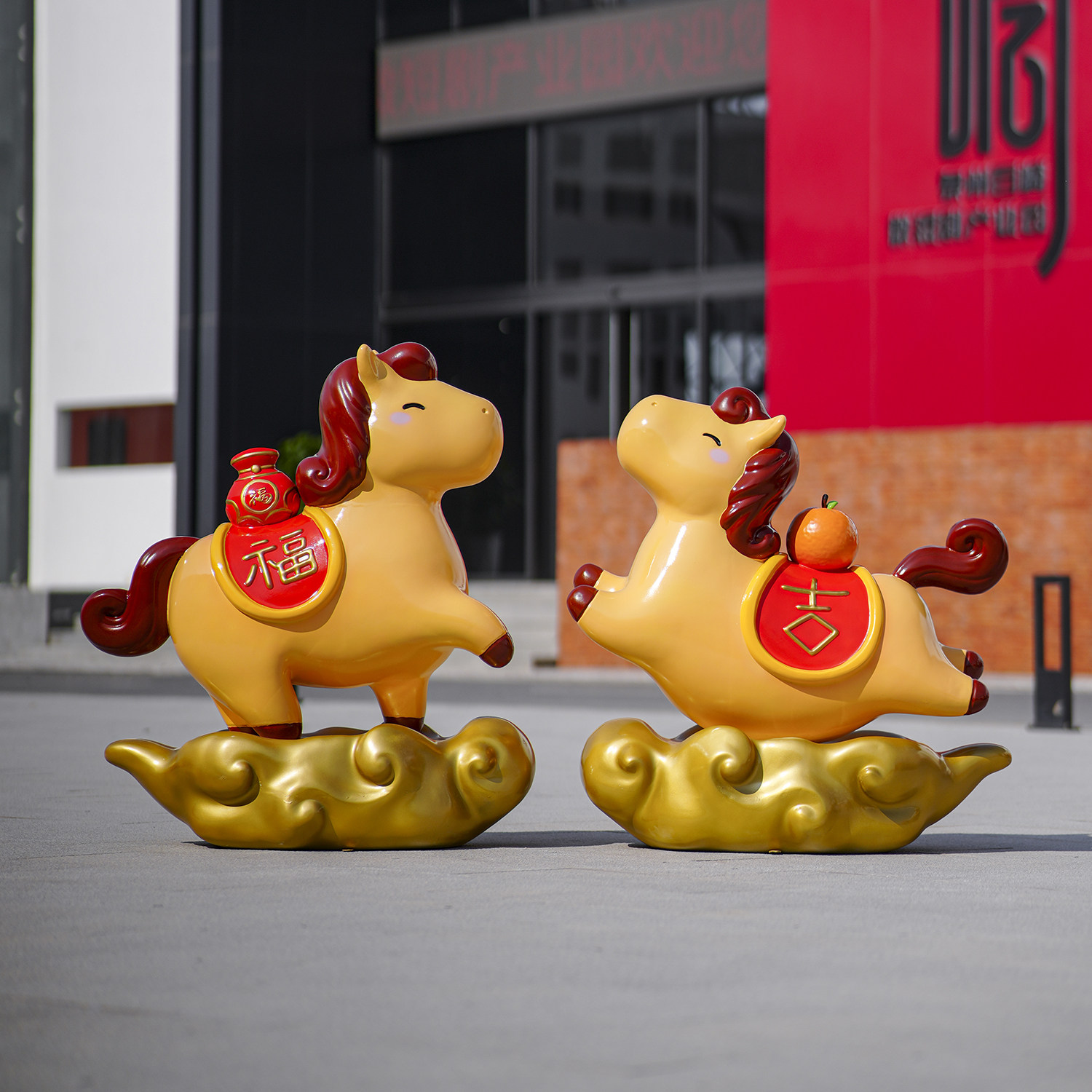 2026卡通招财马年模型雕塑新春元旦吉祥物生肖马玻璃钢大摆件美陈